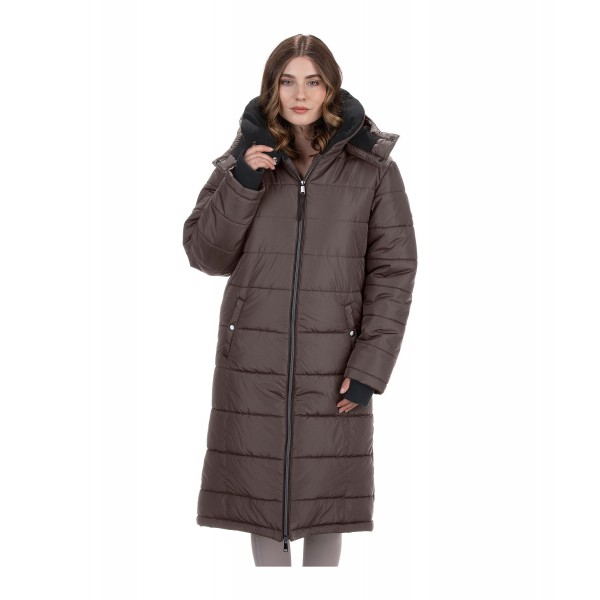 Теплое пальто со съемным капюшоном, проложенным мягким флисом. Манжеты с отверстием для большого пальца. Приятный, высокий воротник, длинный разрез с молнией и дополнительной защитой от дождя. Скрытая двухсторонняя передняя молния с защелкой, петли для ног, два просторных передних кармана, 1 внутренний карман на молнии. Очень теплый наполнитель. 100% полиэстер.