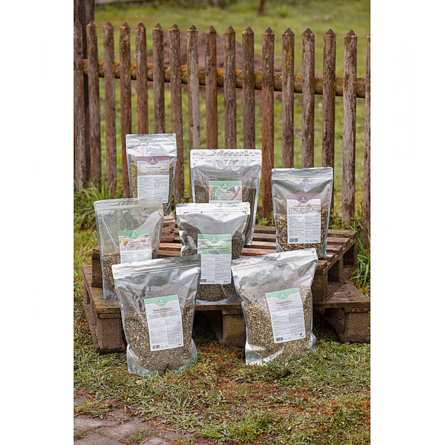 Эхинацея помогает увеличить количество и активность лейкоцитов в крови и, таким образом, положительно влияет на укрепление иммунной системы. Поэтому мы рекомендуем давать ее в случае инфекций, снижения производительности, а также до или после вакцинации. Эхинацея оказывает противоинфекционное, противовирусное и противовоспалительное действие, помогая блокировать воспалительные мессенджеры. Идеально подходит при остром воспалении дыхательных путей или для профилактического кормления в сезон дождей и холодов или в переходный период для лошадей со слабой иммунной системой. Рекомендации: Лошади (масса тела 600 кг) 20-40 г в день Маленькие лошади 10-20 г в день 1 столовая ложка соответствует примерно 5 г. Состав: 100% эхинацея (резаная). Вес 500 г.