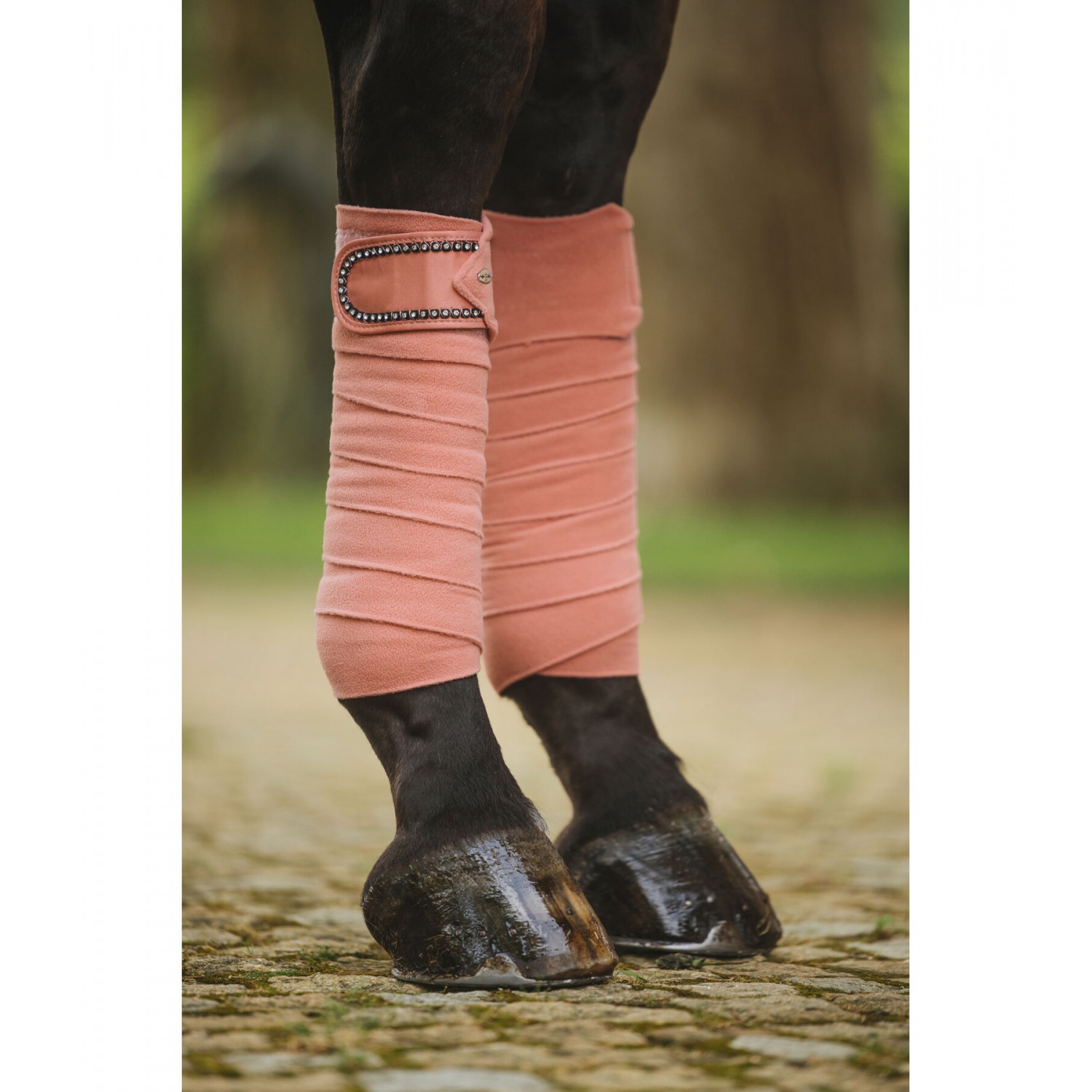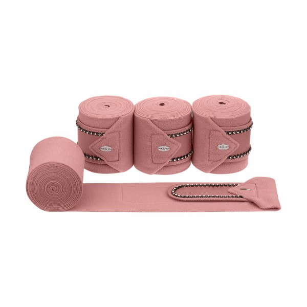 Мягкие флисовые бинты с каймой из сверкающих страз на застежке. 100% полиэстер. F: 300 x 10 см, P (пони): 200 x 8 см. Продаются комплектом из 4 штук.