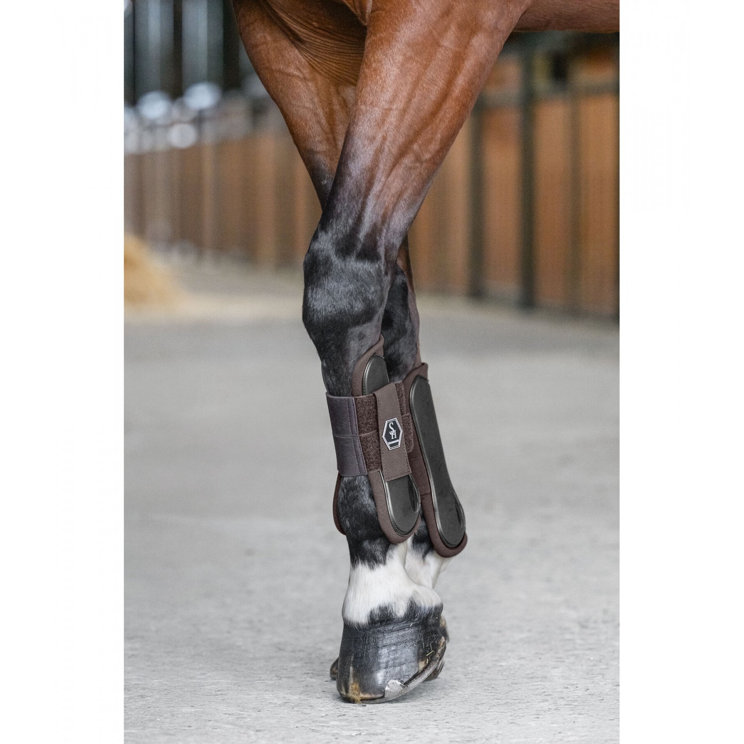 Ногавки с жесткой оболочкой анатомической формы, обеспечивающие сухожильному суставу необходимую защиту и при этом не стесняющие движений. Твердая оболочка имеет углубление в области прикрепления поддерживающей связки, которое особенно мягко проложено. Внутри подкладка из хлоропренового каучука, 2 резинки с застежками-липучками для оптимальной регулировки размера. Продаются парами.