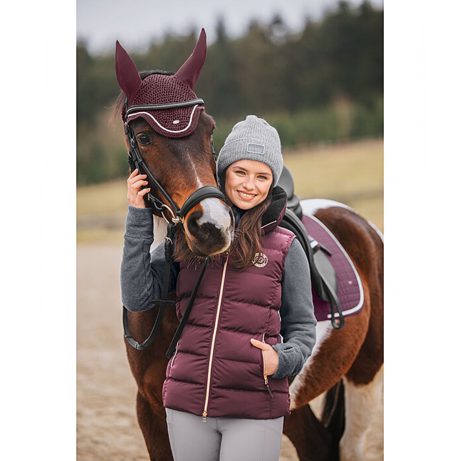 Классические вязанные уши с шелковистым, блестящим декоративным шнуром контрастного цвета. Филигранная металлическая пластина серебристого цвета с выгравированным логотипом. 100% полиэстер.