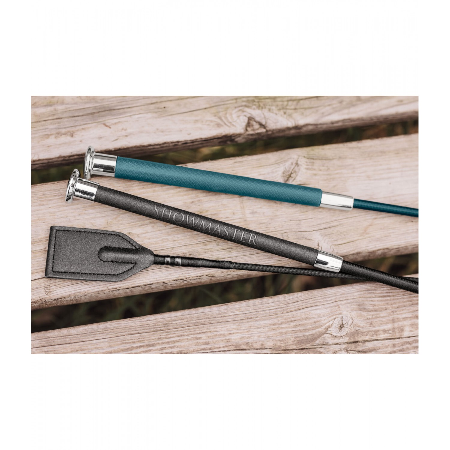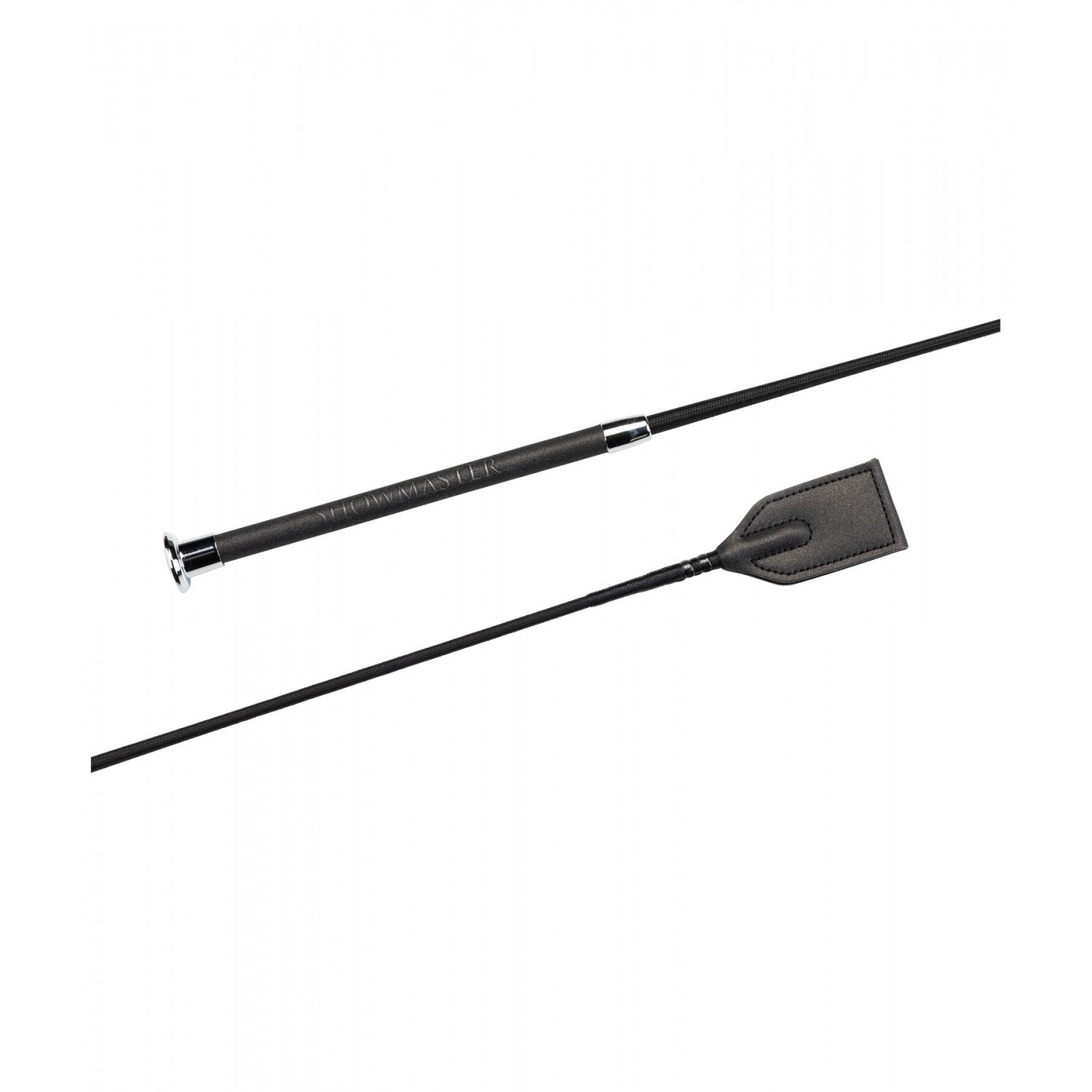 Стильный хлыст с блестящей рукояткой. С древком из стекловолокна и нейлоновой оплеткой.