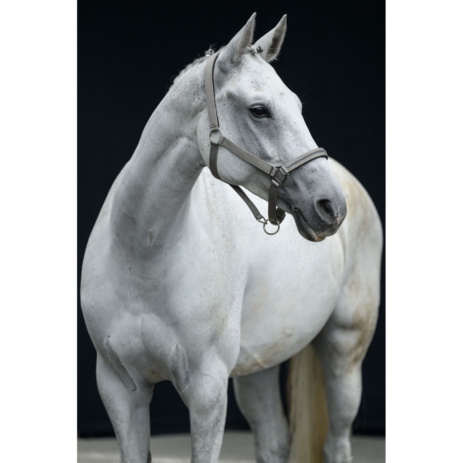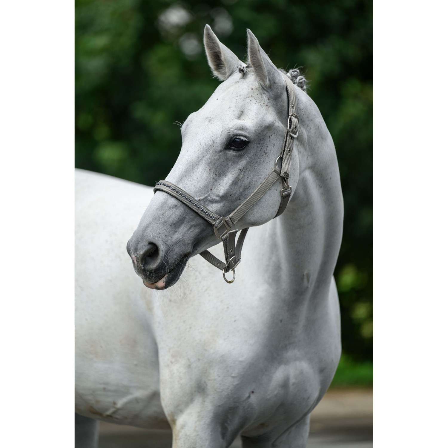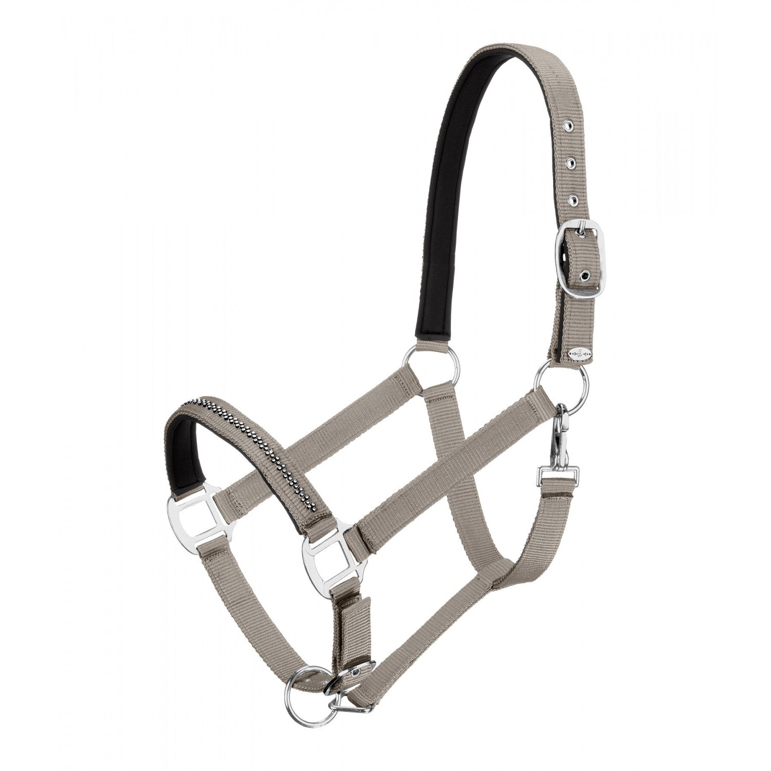 Элегантный, прочный недоуздок с мелкими стразами на носовом ремне и мягкой подкладкой из хлоропреновой резины на оголовье и носовом ремне для комфортного ношения. Регулируется на оголовье и подбородочном ремне с помощью фурнитуры. Недоуздок: 100% полипропилен, подкладка: 100% хлоропреновая резина.