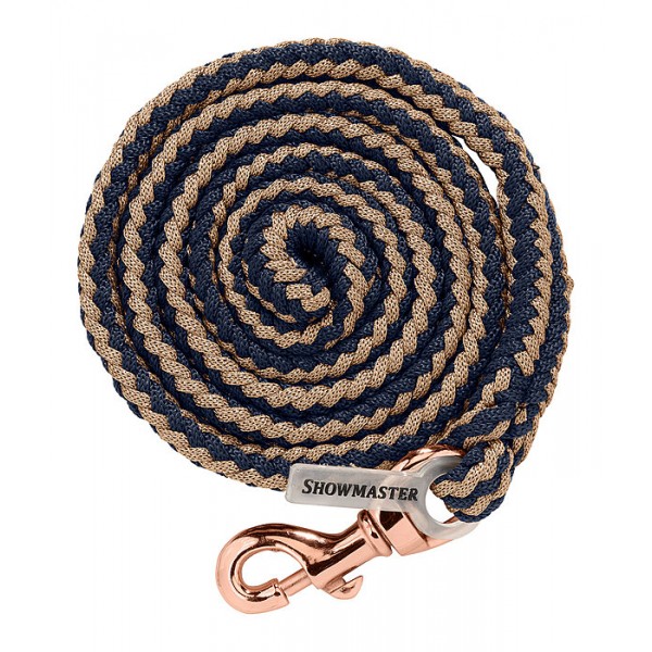 Прочный чомбур круглого плетения с блестящей нитью и карабином. Фурнитура цвета розового золота. Длина 1,5 м. 100% полиэстер.