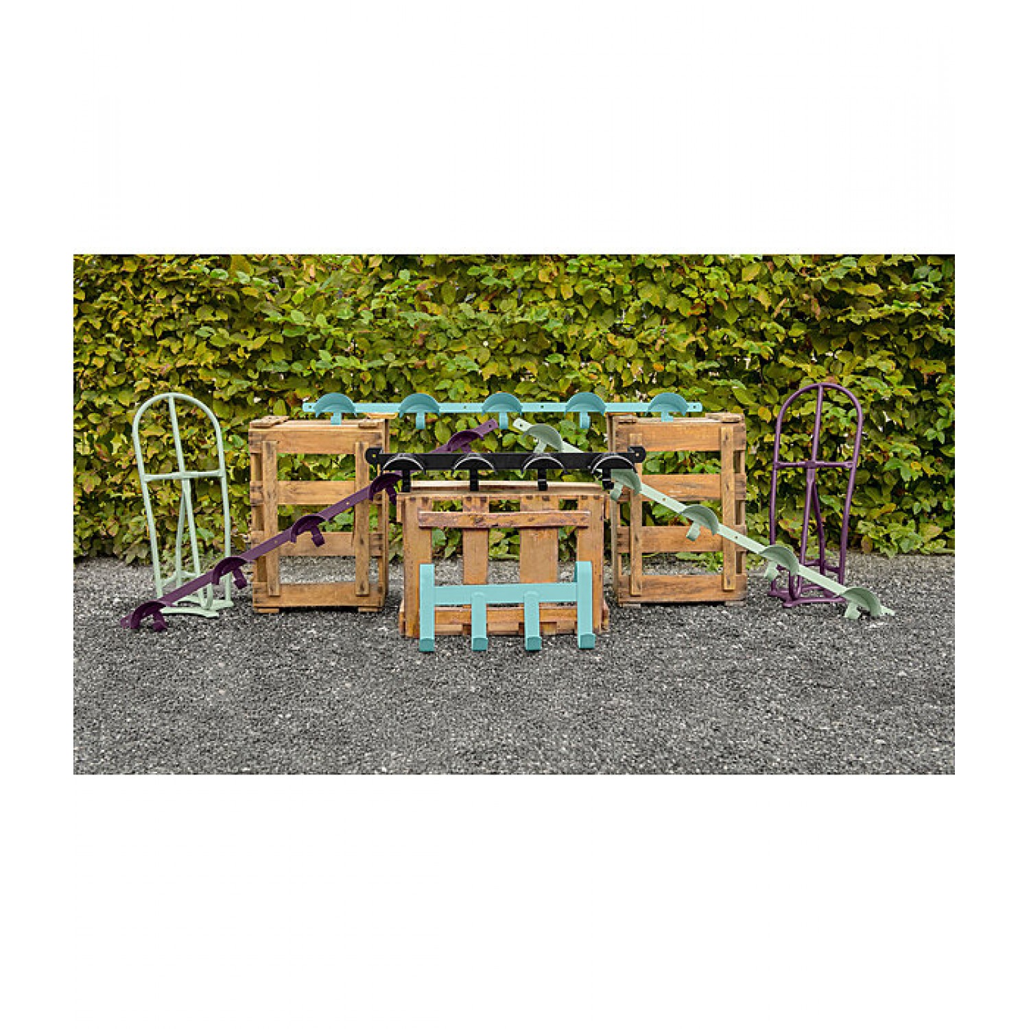 Очень хорошая качественная металлическая вешалка. Предлагает дополнительное пространство для подвешивания с 5 держателями для уздечки и 5 дополнительными крючками 4 отверстия обеспечивают легкое и надежное крепление. Длина1м.