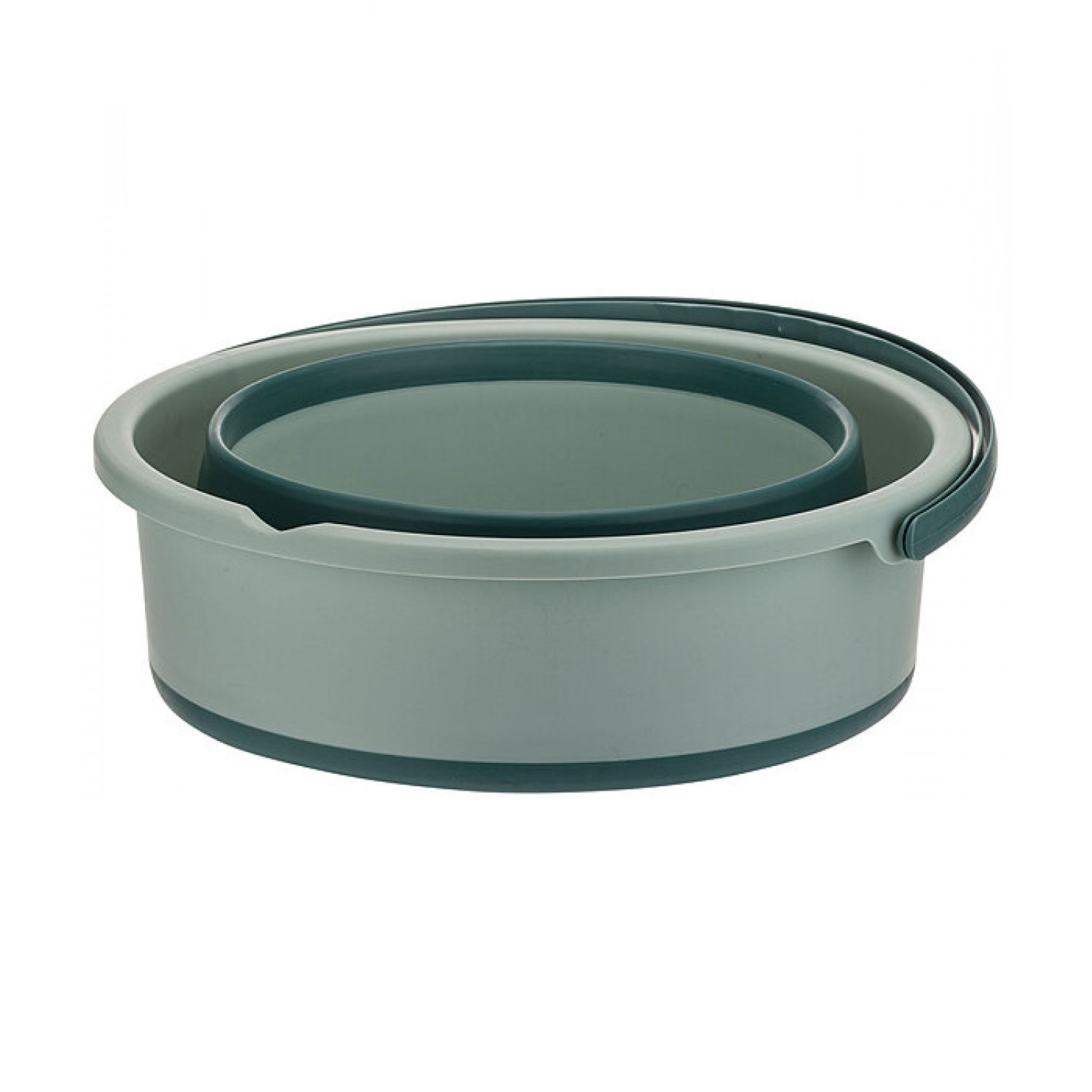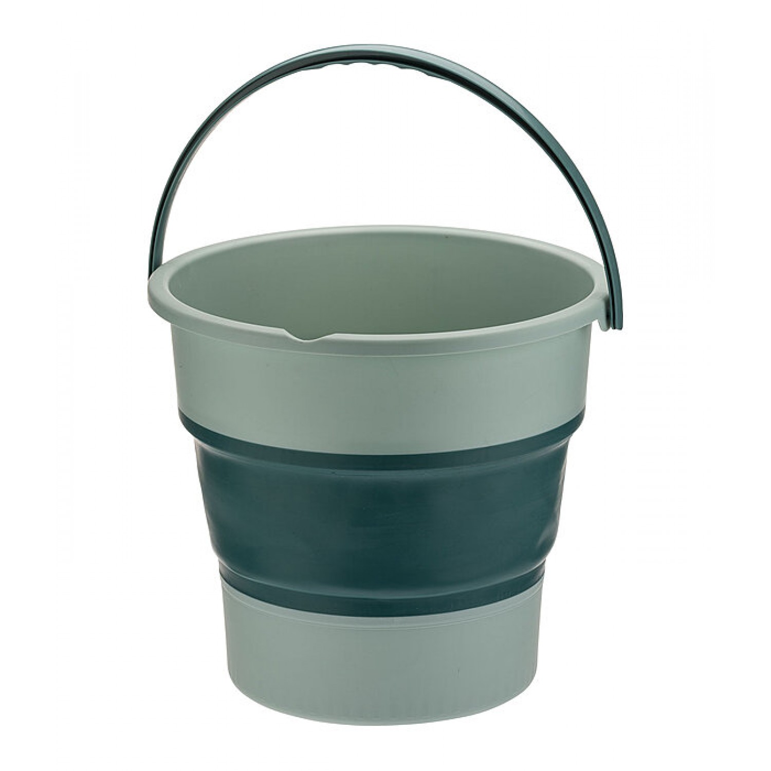 Идеально подходит для использования в дороге. Складное ведро легко складывается и экономит место. Просто разложите его: зелёное ведро имеет объём 17 литров, розовое — 10 литров.