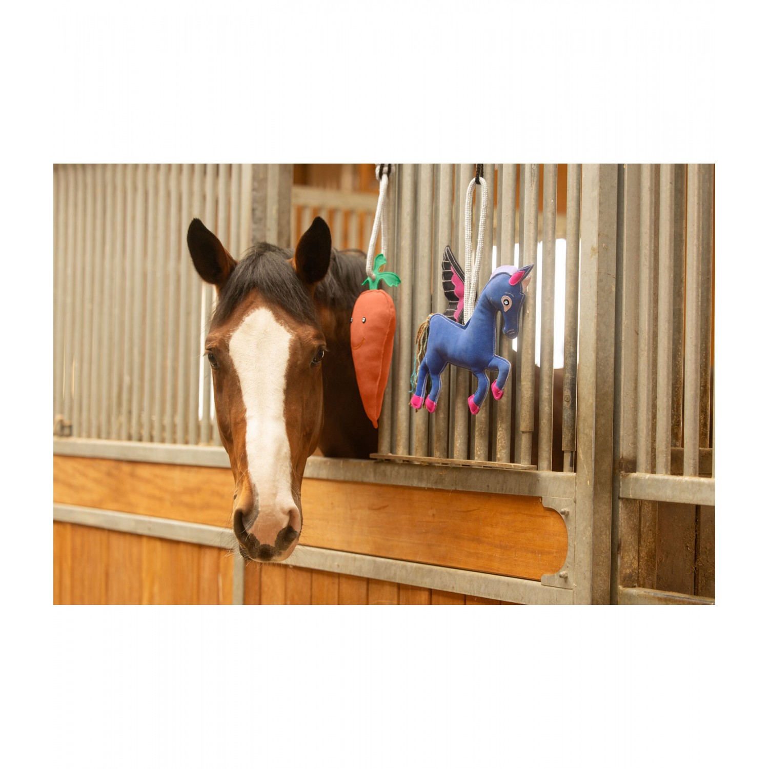 Забавная игрушка для лошадей, помогающая бороться со скукой в конюшне или на пастбище. Высота около 30 см. Материал верха: 100% натуральная кожа.