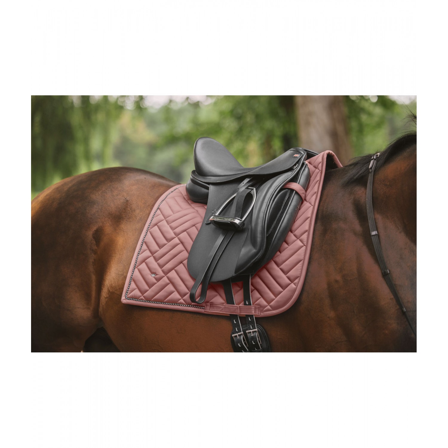 Особенно элегантный вальтрап квадратной формы с эффектной стежкой. Окружен сверкающими стразами. Табличка с неброским гравированным логотипом. Нижняя часть изготовлена из влагопоглощающего и воздухопроницаемого сетчатого материала. 100% полиэстер.