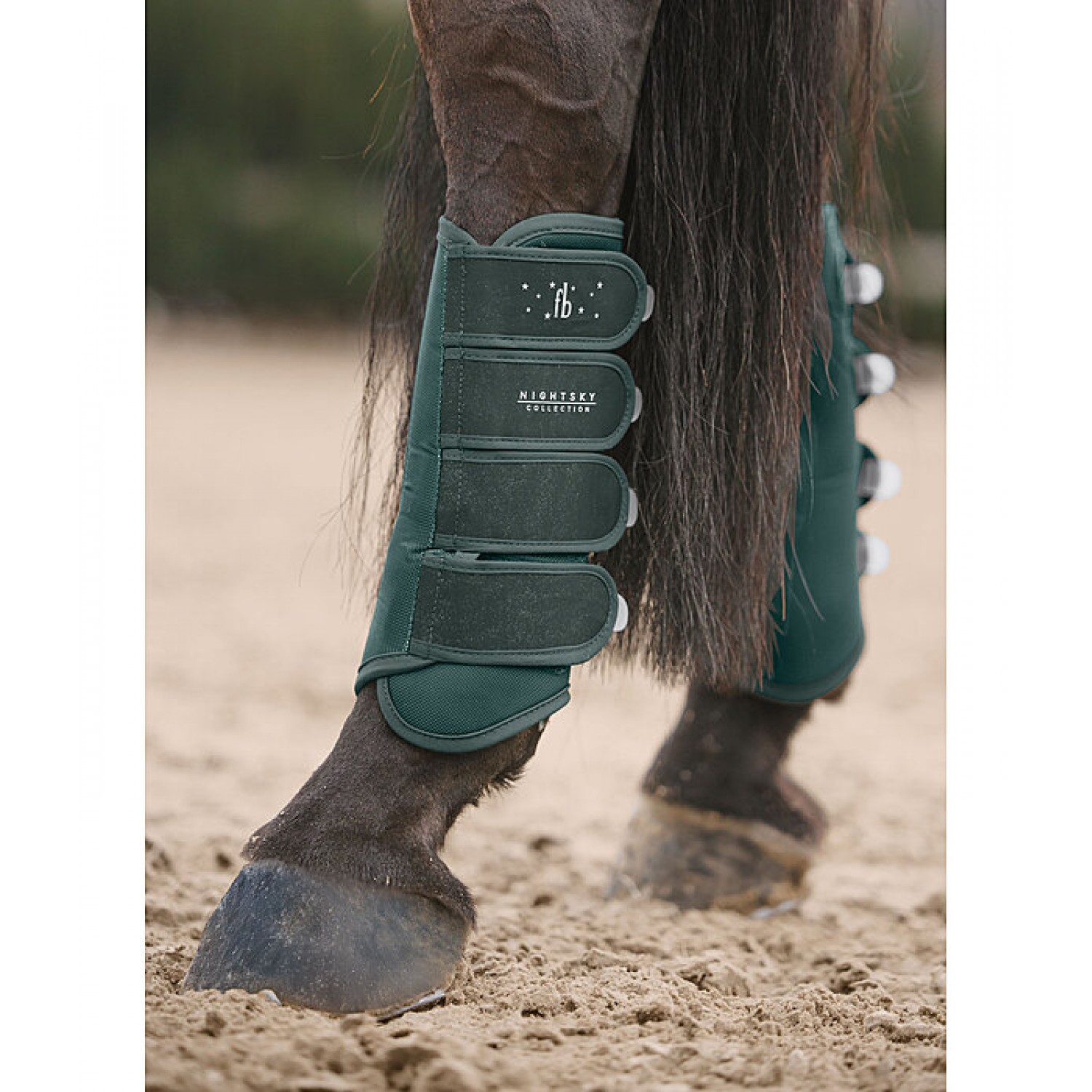 Полностью закрытые, лёгкие и мягкие выездковые ногавки для задних ног. Внутренняя подкладка изготовлена из мягкого, эластичного и амортизирующего хлоропренового каучука. Внешний слой изготовлен из прочного, грязеотталкивающего материала. Анатомическая форма без стесняющей движения жёсткой оболочки. Застёжки-липучки обеспечивают надёжную посадку и украшены привлекательным логотипом. Внутренняя подкладка: 100% хлоропреновый каучук; внешний материал: 100% полиэстер. Продаются парами.