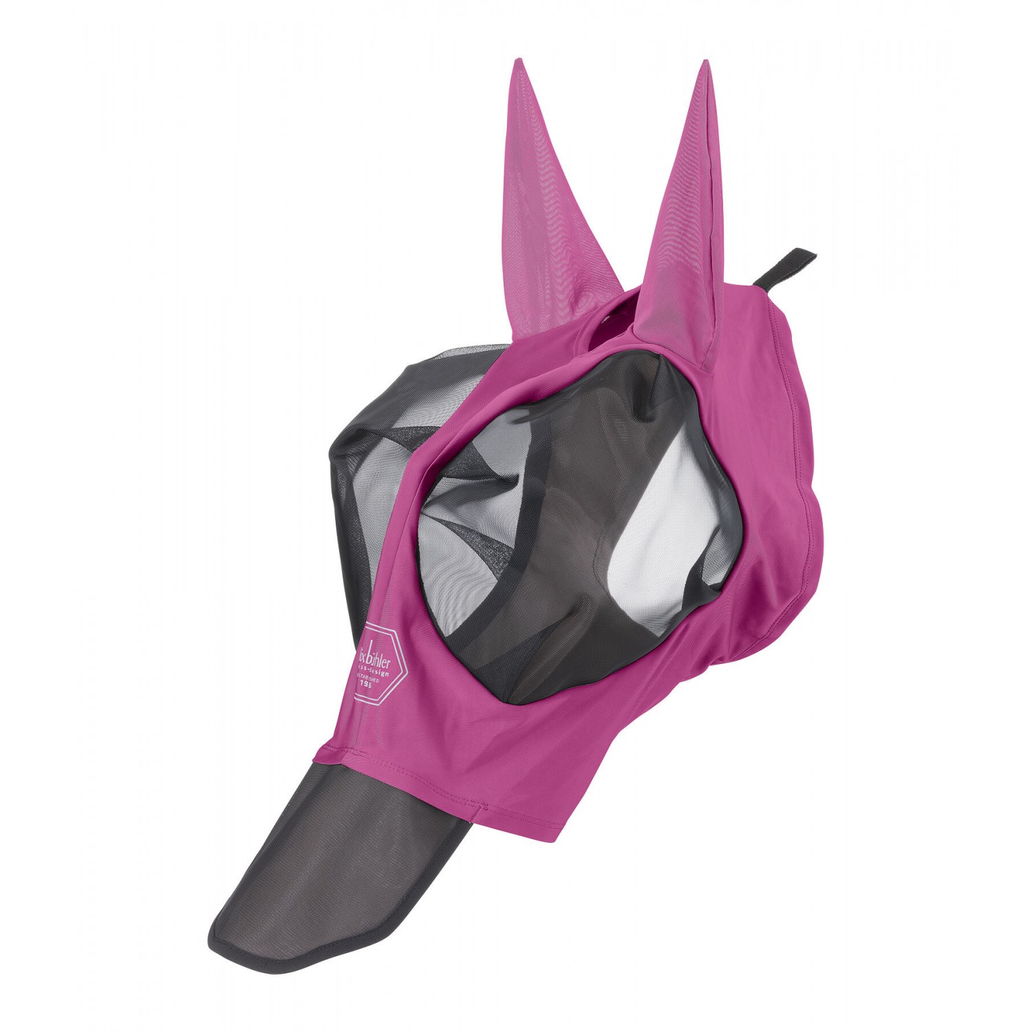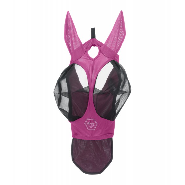 Плотно прилегающая эластичная маска от насекомых с прочной молнией и дополнительной застежкой-липучкой для надежной фиксации. Также имеется анатомически сформированная непрозрачная защита ноздрей, которая защищает чувствительную область носа лошади от воздействия солнца, создавая тень. Область вокруг глаз большого размера выполнена из жесткого, сохраняющего форму сетчатого материала, обеспечивающего безопасное расстояние от глаз, и отделана мягким флисом. Мелкоячеистая сетка блокирует не менее 50% УФ-излучения, обеспечивая при этом хорошую видимость. Легкий, высокоэластичный материал Lycra обеспечивает защиту UPF 50+, блокируя не менее 97% УФ-излучения. Ушные части изготовлены из эластичного перфорированного материала. Имеет отверстие для передней части головы и светоотражающий логотип на переносице. Материал маски и ушей: 88% полиэстер, 12% эластан; сетчатый материал: 100% нейлон.