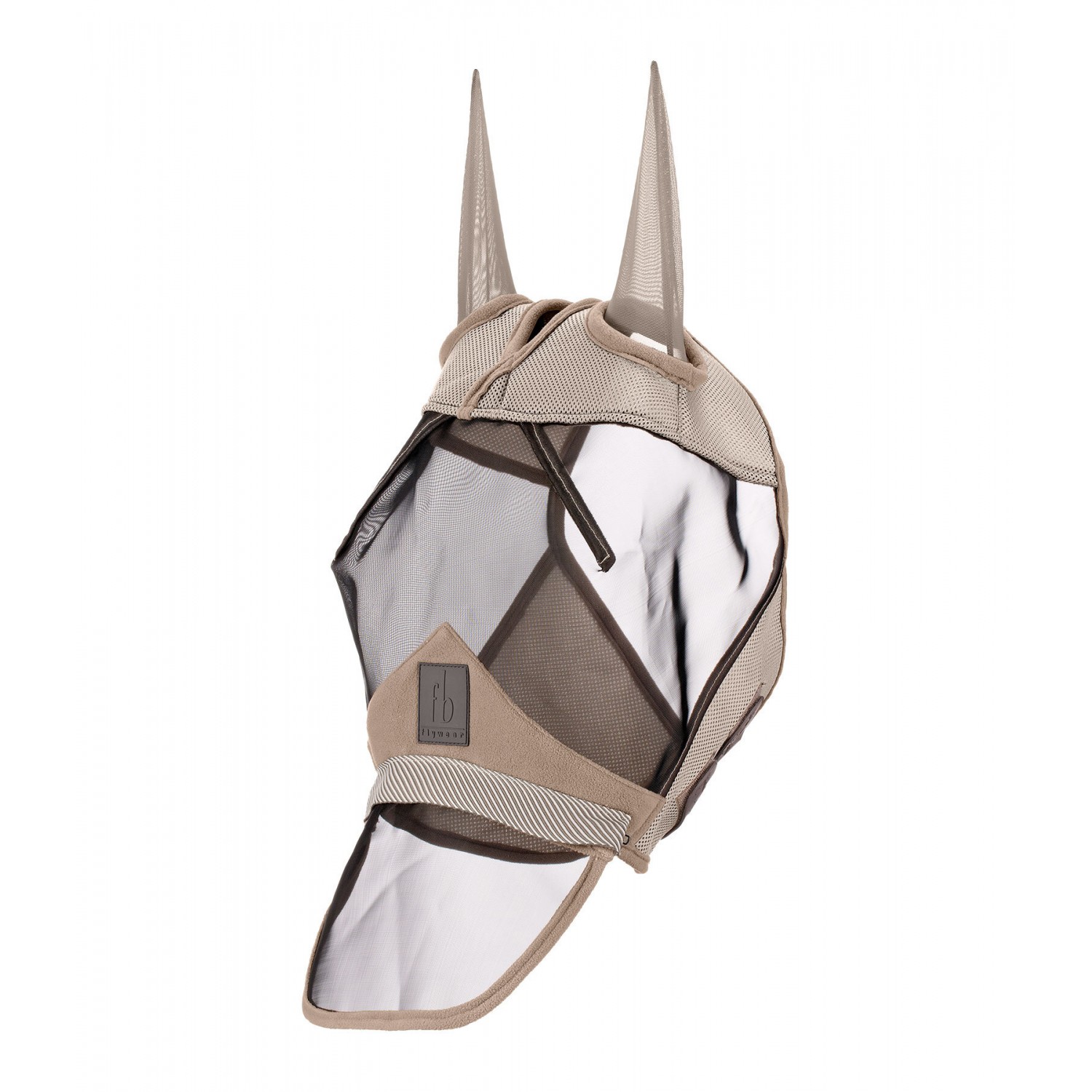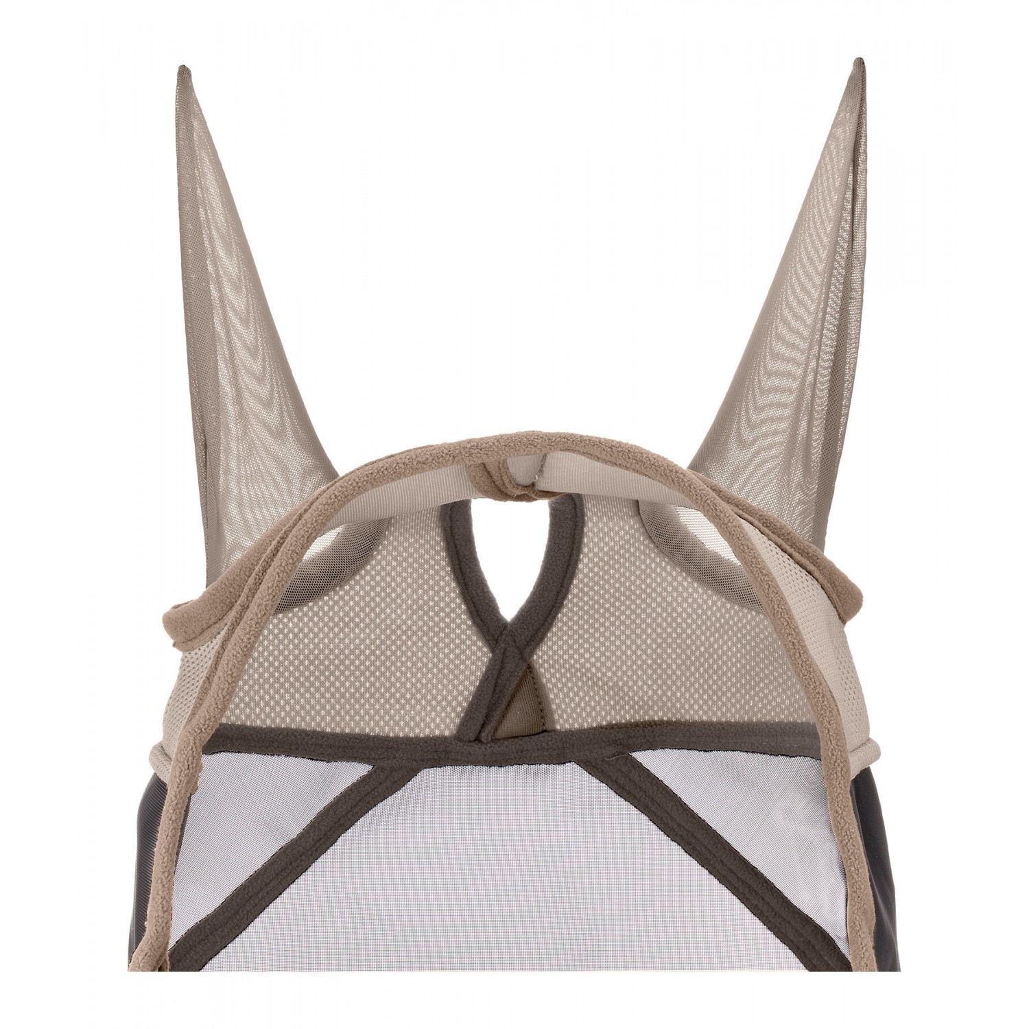 Спортивная и функциональная маска со съемной защитой ноздрей благодаря практичной системе застежек-молний и стильной полосатой отделке со спортивными логотипами. Двойная застежка-липучка обеспечивает хорошую регулировку размера, оптимальную посадку и комфорт. Область лба и щек выполнена из высокодышащей сетчатой ткани. Флисовая отделка по всему периметру предотвращает натирание. Мелкоячеистая сетка для глаз блокирует не менее 50% УФ-излучения, обеспечивая при этом хорошую видимость. Разделительный шов гарантирует безопасное расстояние от глаз лошади в любое время. Вырез для передней части челки. 100% полиэстер.