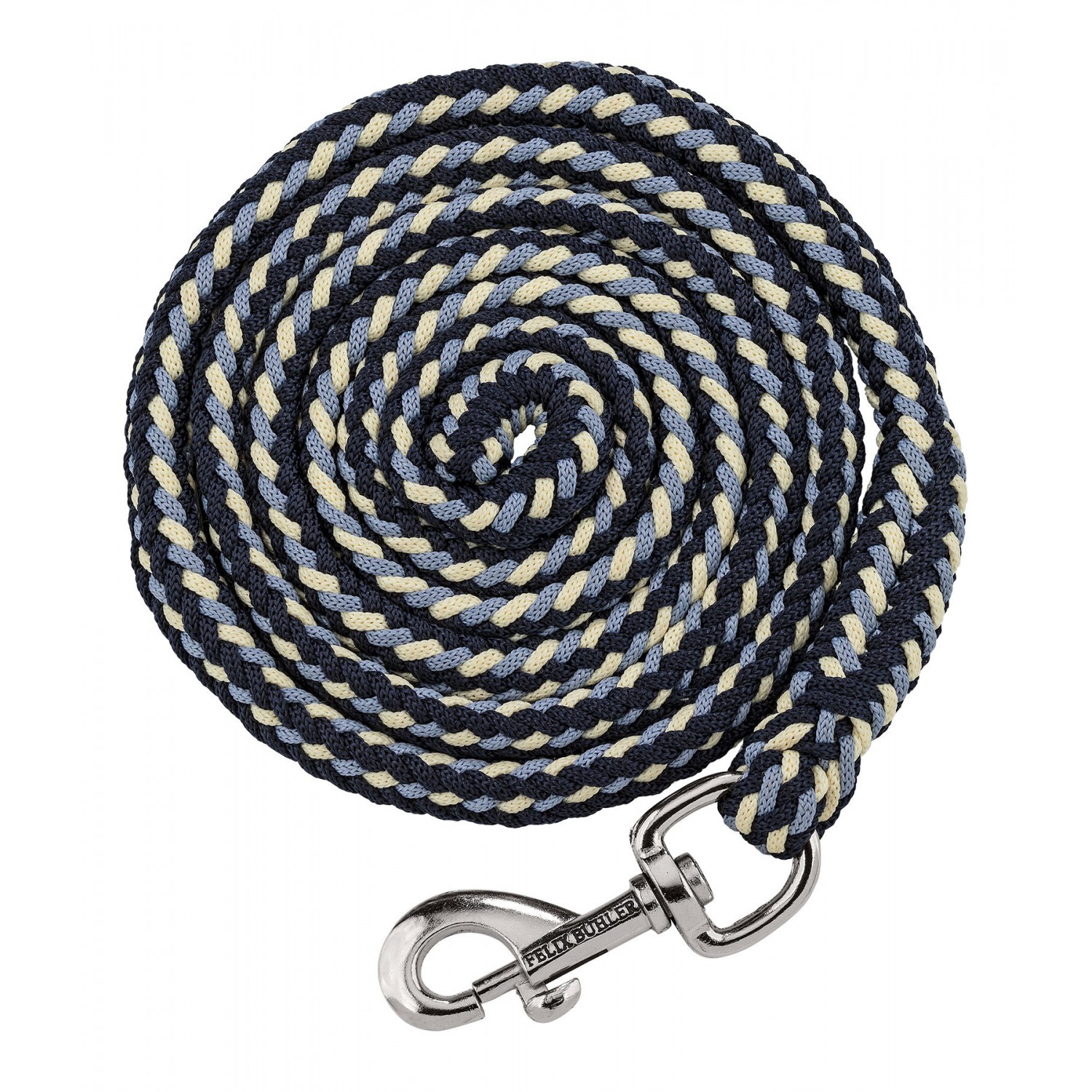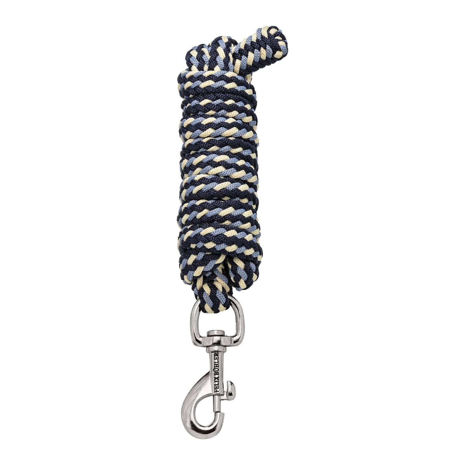 Прочный, круглоплётеный, трёхцветный чомбур с карабином. Длина 2 м. 100% полиэстер. Идеально подходит к недоуздку 310056.