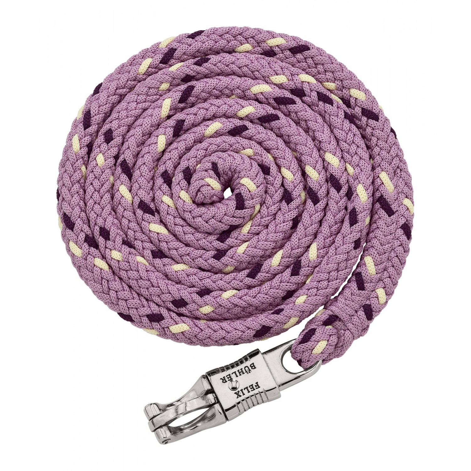 Прочный, круглоплётный, трёхцветный чомбур с паническим карабином. Длина 2 м. 100% полиэстер. Идеально подходит к недоуздку 310057.