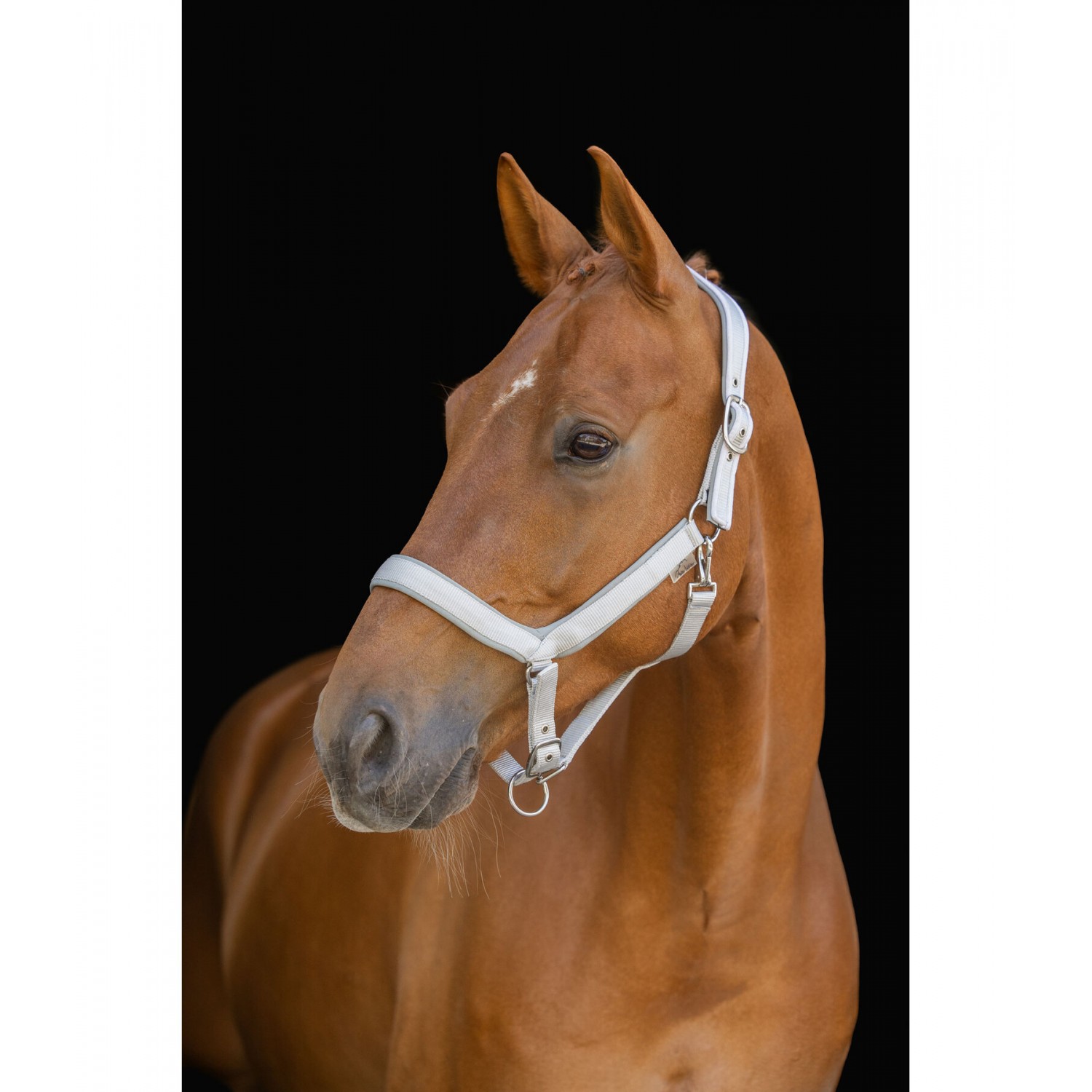 Удобный недоуздок анатомической формы и вырезами для ушей. Подкладка из мягкого хлоропренового каучука. Инновационные щечные ремни и капсюль минимизирует давление в области лицевых нервов и не требуют массивных металлических карабинов. 100% полипропилен.