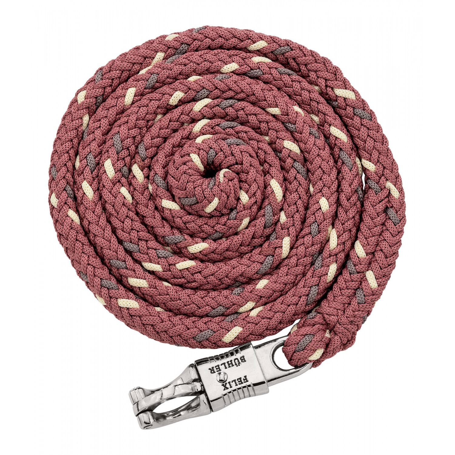 Прочный, круглоплётный, трёхцветный чомбур с паническим карабином. Длина 2 м. 100% полиэстер. Идеально подходит к недоуздку 310057.