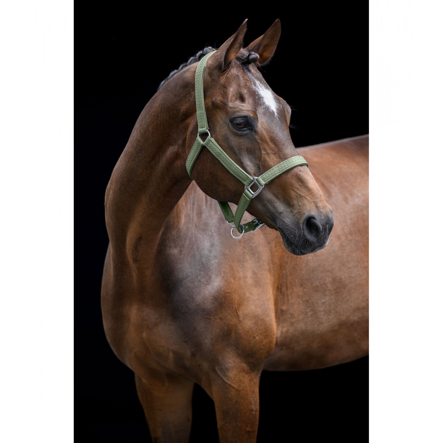 Стильный, элегантный недоуздок из искусственной кожи с мягкой хлоропреновой резиновой подкладкой на оголовье и щечных ремнях для максимального комфорта. Легко регулируется на оголовье и носовом ремне. С карабинами. Фурнитура в тон.