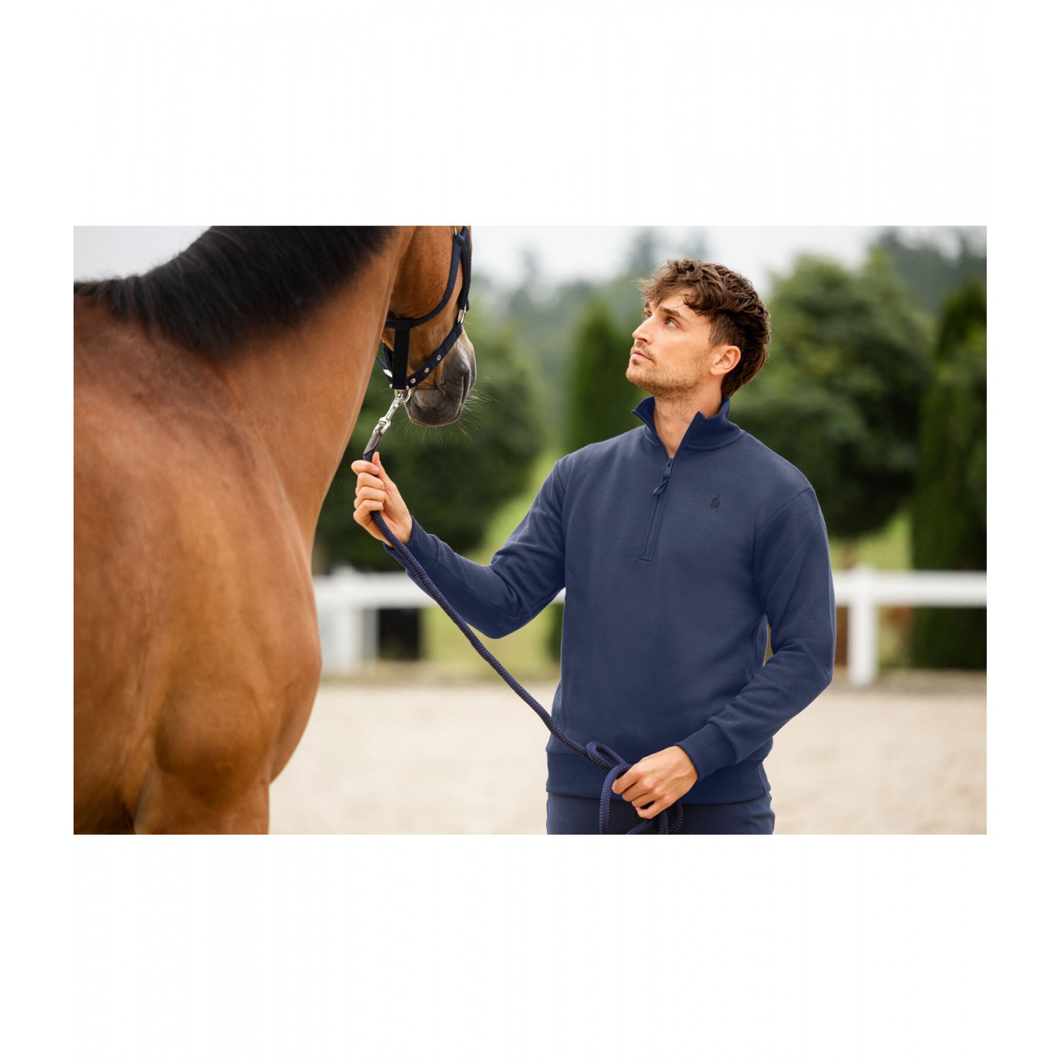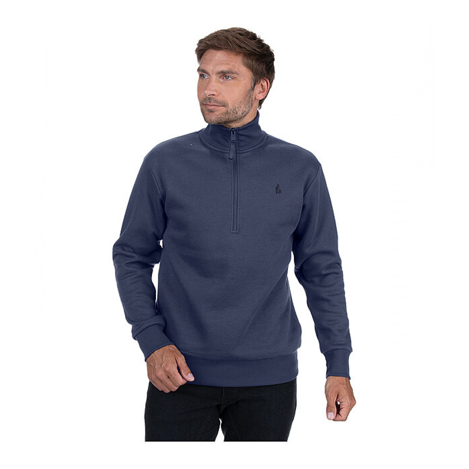 Спортивная толстовка из высококачественного эластичного хлопка с высоким воротником на молнии. Эластичный мягкий материал на рукавах и подоле. Тонкий принт с логотипом в тон на груди. 65% полиэстер, 35% хлопок.