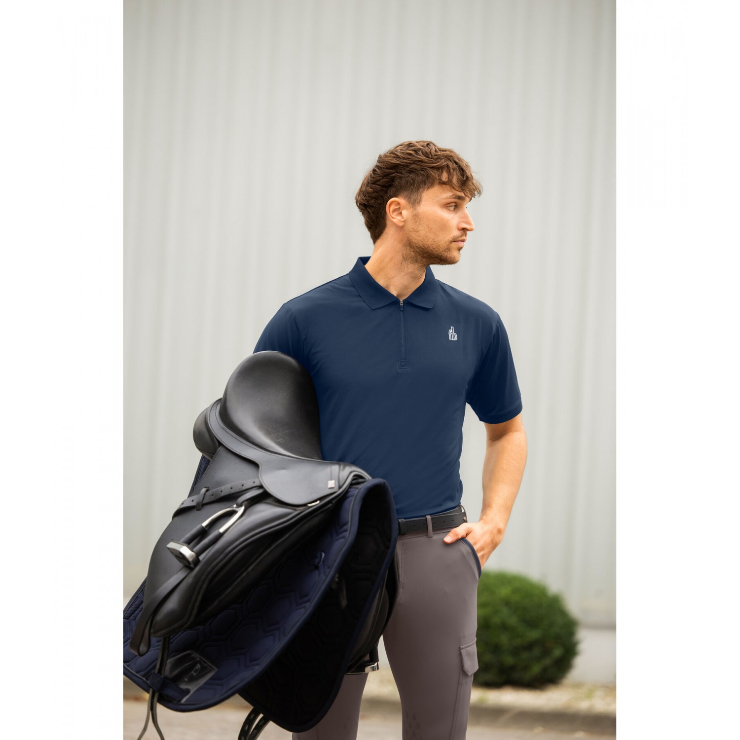 Спортивная эластичная рубашка-поло с застежкой-молнией. Изготовлена из дышащего и быстросохнущего функционального материала. 100% полиэстер.
