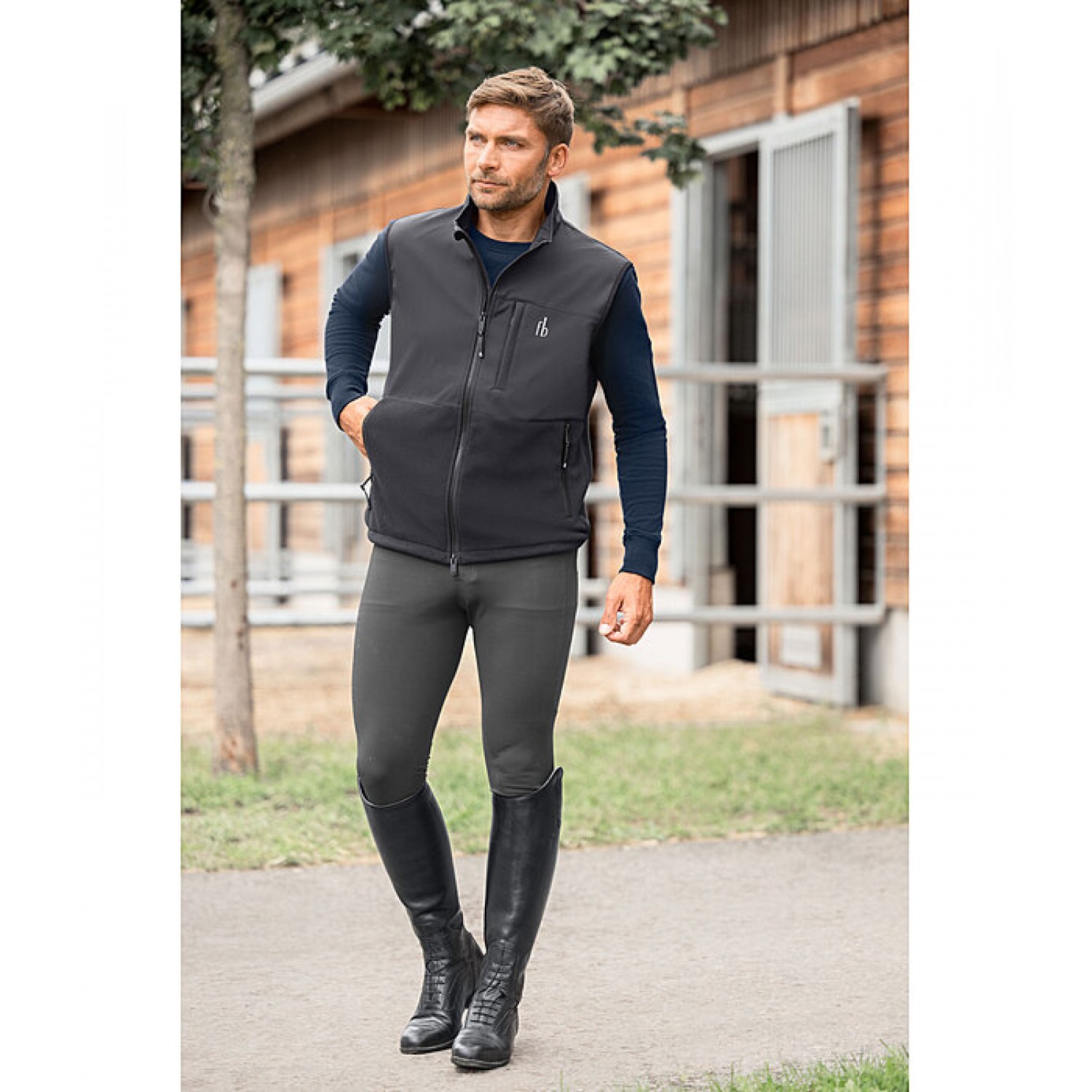 Функциональный и водоотталкивающий жилет. С воротником-стойкой и вставкой из материала softshell, двухсторонней молнией спереди на подкладке, двумя карманами на молнии спереди и потайным нагрудным карманом на молнии. Подол можно отрегулировать индивидуально. Софтшелл 94% полиэстер, 6% эластан, флис 100% полиэстер.