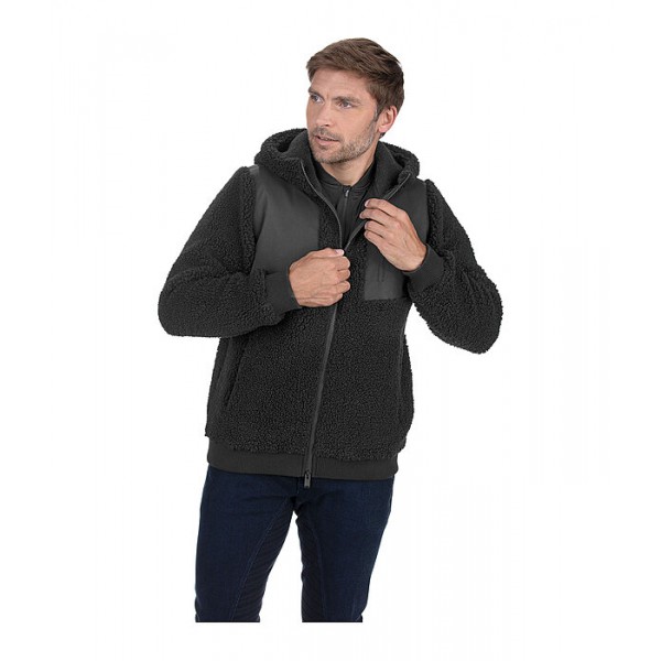 Уютная куртка из мягкого плюшевого флиса с застегивающимся капюшоном и водоотталкивающими и ветрозащитными вставками из материала «софтшелл» спереди и сзади. Двусторонняя молния спереди, два кармана на молнии спереди и эластичные манжеты и подол. 100% полиэстер.