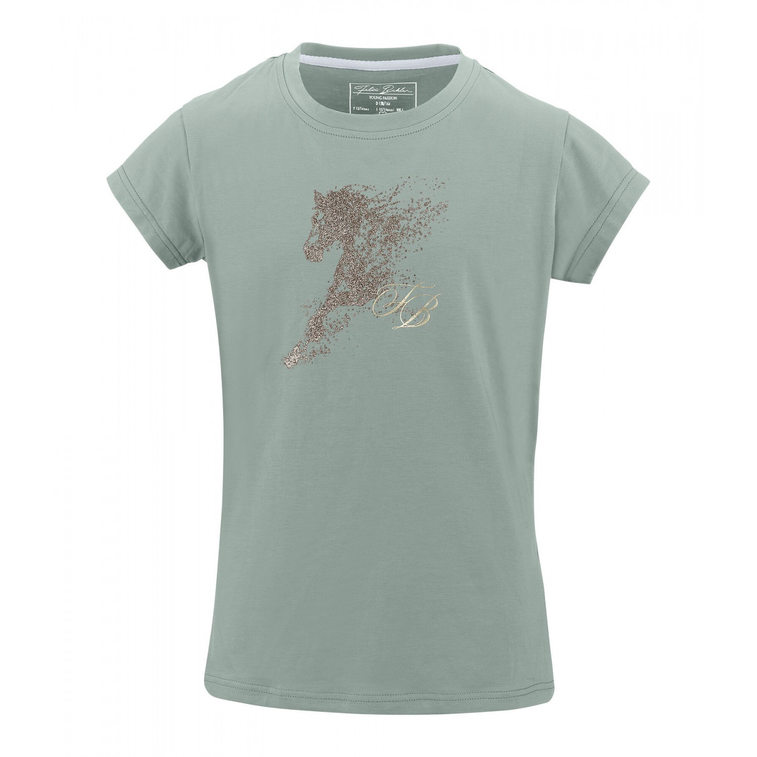 Модная футболка для детей с розово-золотым фольгированным принтом в виде лошади. круглый вырез горловины. 95% хлопок, 5% эластан.