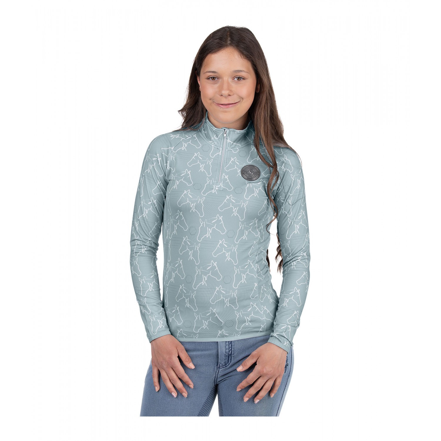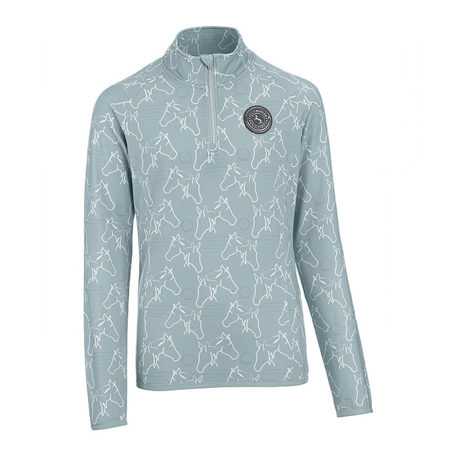 Водолазка с длинными рукавами, начесаной подкладкой и красивым светлым принтом лошадей по всей поверхности. Рукава реглан и воротник-стойка на молнии с защитой подбородка. Дышащая и быстросохнущая ткань. Логотип Felix Bühler на груди. Состав: 90% полиэстер, 10% эластан.