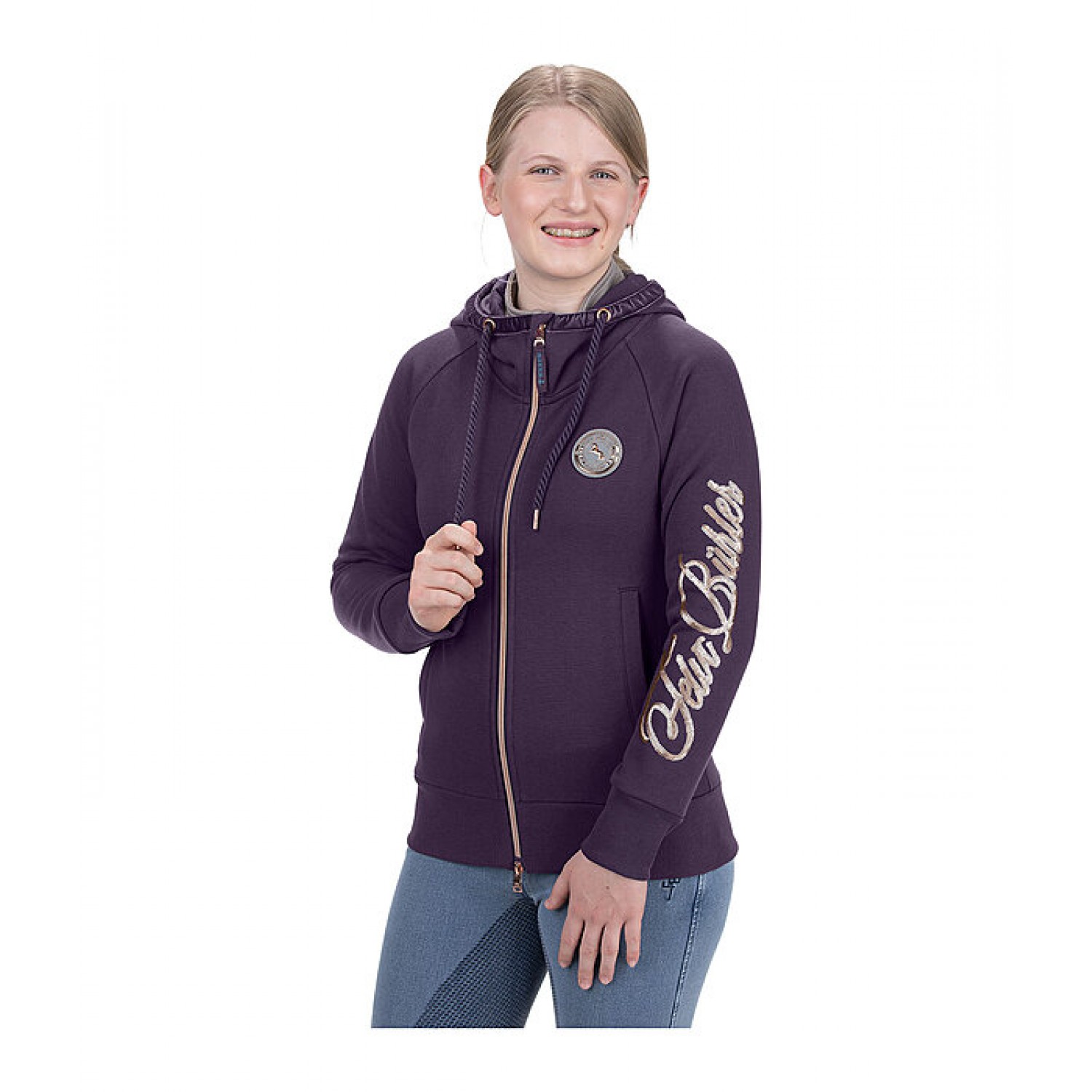Спортивная толстовка для детей из высококачественного эластичного хлопка с великолепным логотипом Felix Bühler на груди и надписью Felix Bühler из блестящих пайеток цвета розового золота. Регулируемый капюшон декорирован бархатной лентой и витым шнуром. Особенно удобно носить благодаря шероховатой внутренней стороне. Двусторонняя молния цвета розового золота с подкладкой спереди с защитой подбородка, 2 прорезных кармана спереди, рукава и низ из эластичного мягкого трикотажного материала. 60% хлопок, 40% полиэстер.