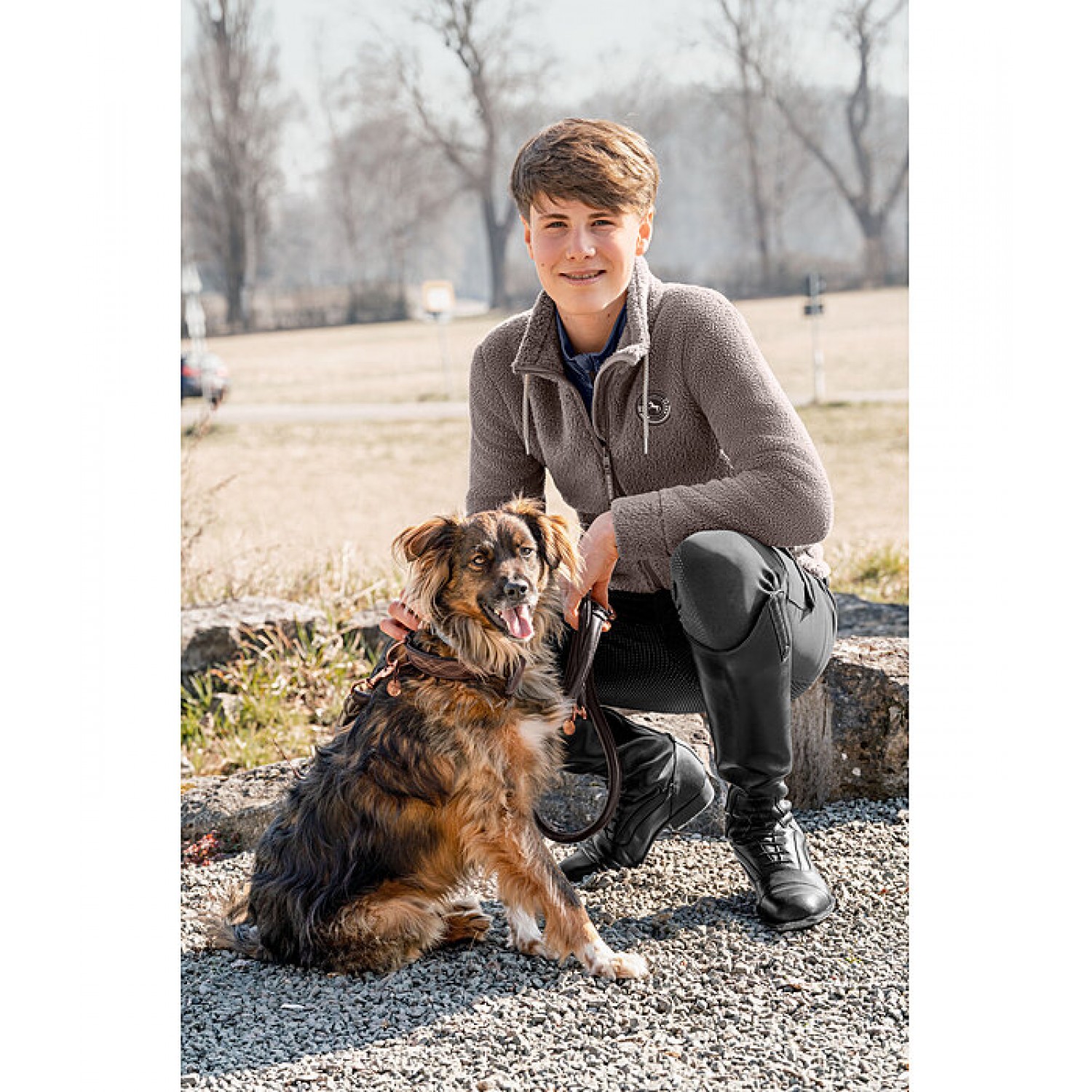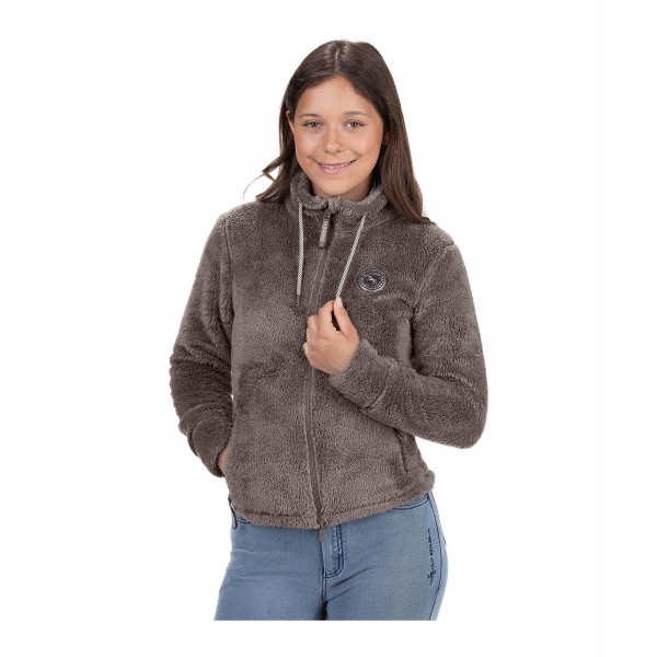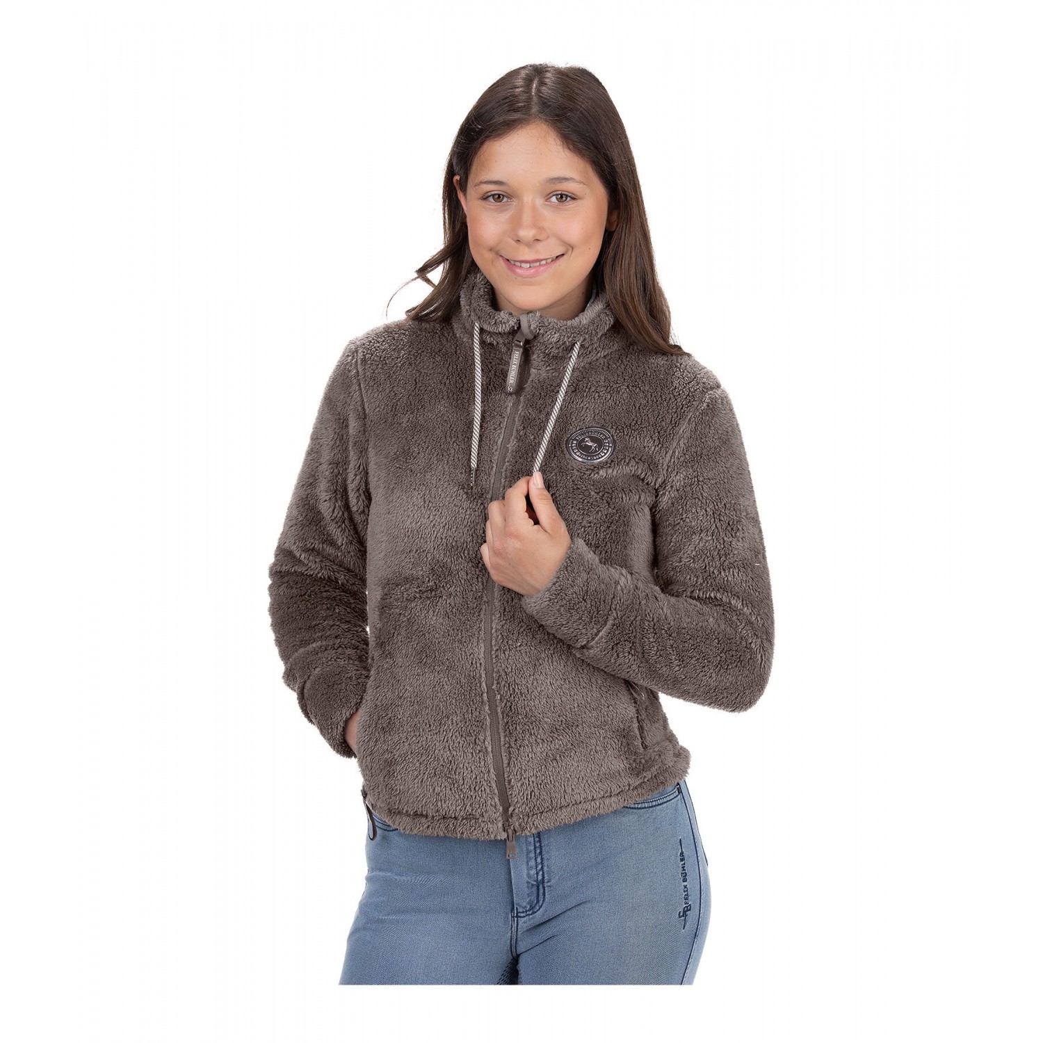 Уютная флисовая куртка для детей с высоким регулируемым воротником. Двусторонняя молния на подкладке с защитой подбородка, два кармана на молнии спереди, значок Felix Bühler на груди и широкие манжеты. 100% полиэстер.