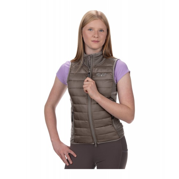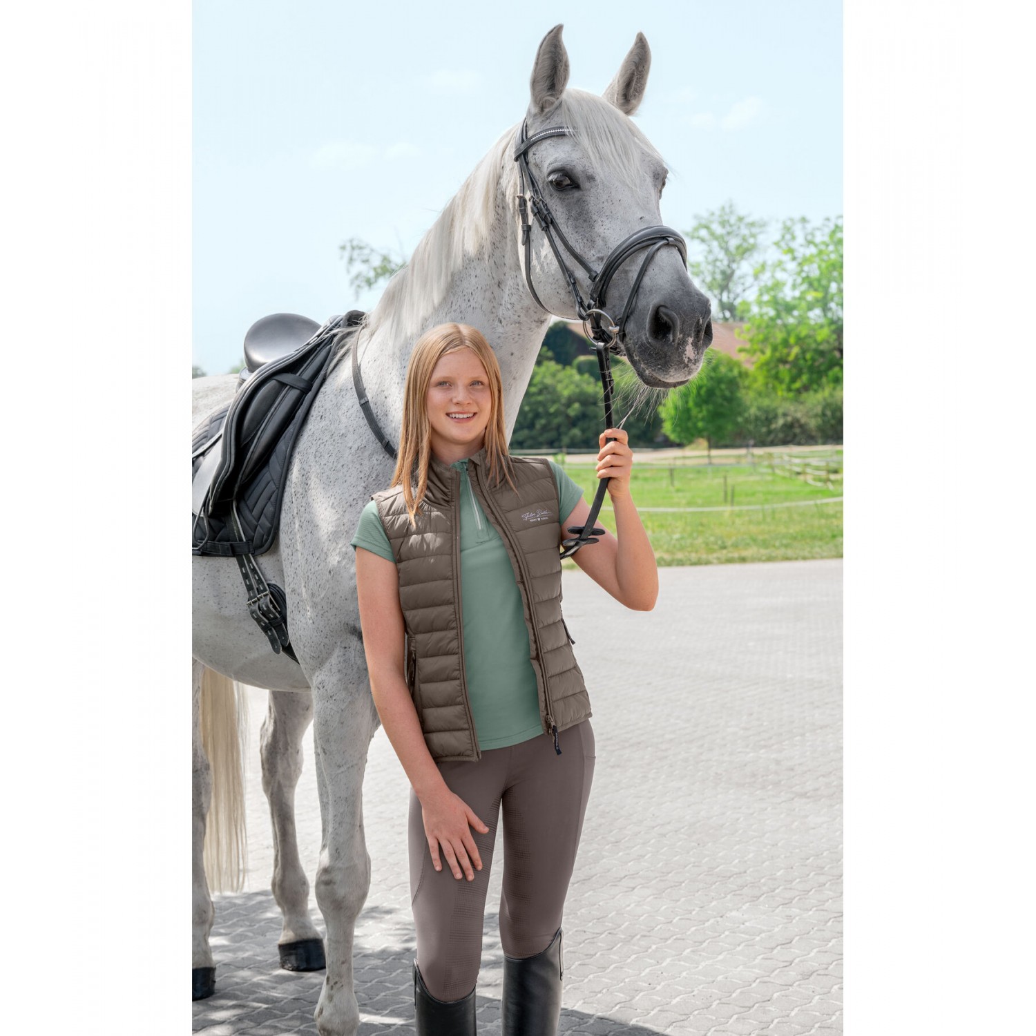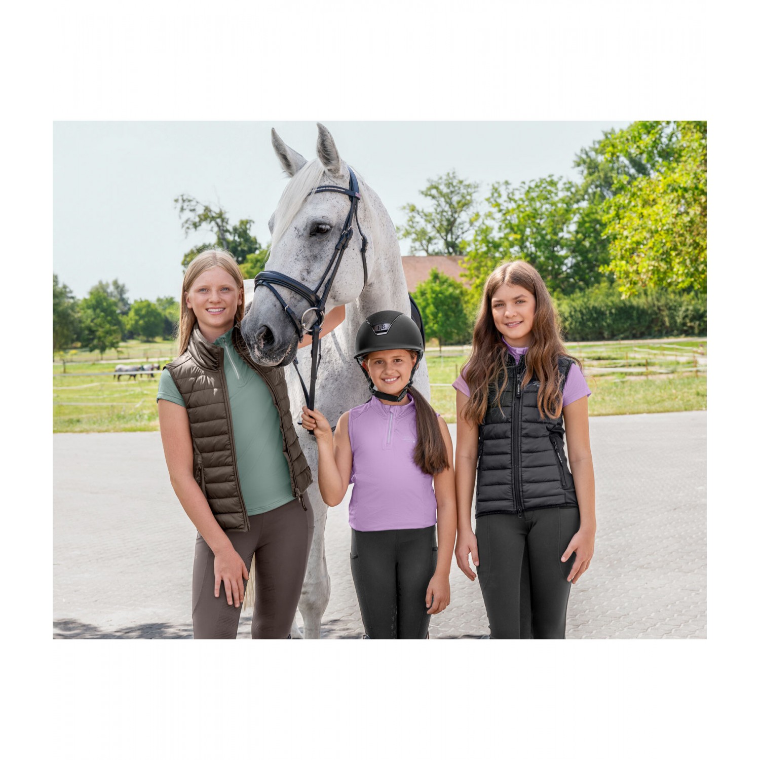Легкий, элегантный детский жилет для верховой езды из ветрозащитного нейлона с эластичными вставками по бокам, обеспечивающими оптимальную свободу движений и идеальную посадку. Имеет воротник-стойку, подкладку с двусторонней застежкой-молнией спереди, два передних кармана на молнии и вышивку Felix Bühler на груди. 100% нейлон, эластичные вставки: 95% полиэстер, 5% эластан.