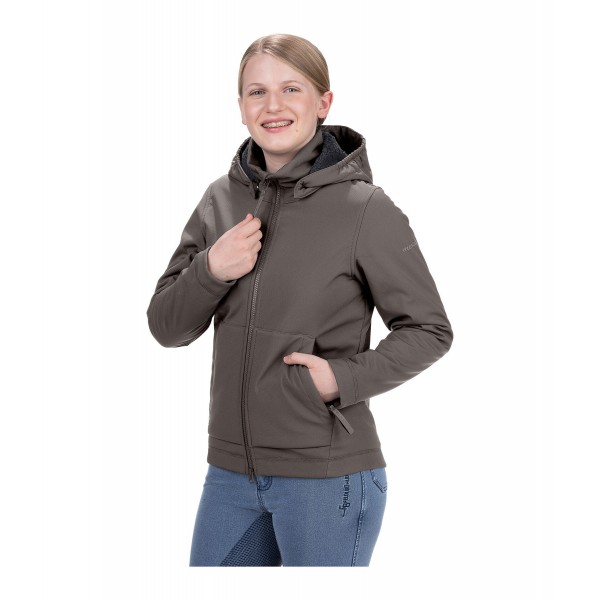Спортивная, эластичная детская куртка-софтшелл с капюшоном, свободного кроя, с очень мягкой флисовой подкладкой. Водоотталкивающая, ветрозащитная и дышащая. Двусторонняя молния спереди, два кармана на молнии спереди, съёмный капюшон и светоотражающий логотип Felix Bühler на рукаве и переднем кармане. Состав: 94% полиэстер, 6% эластан.