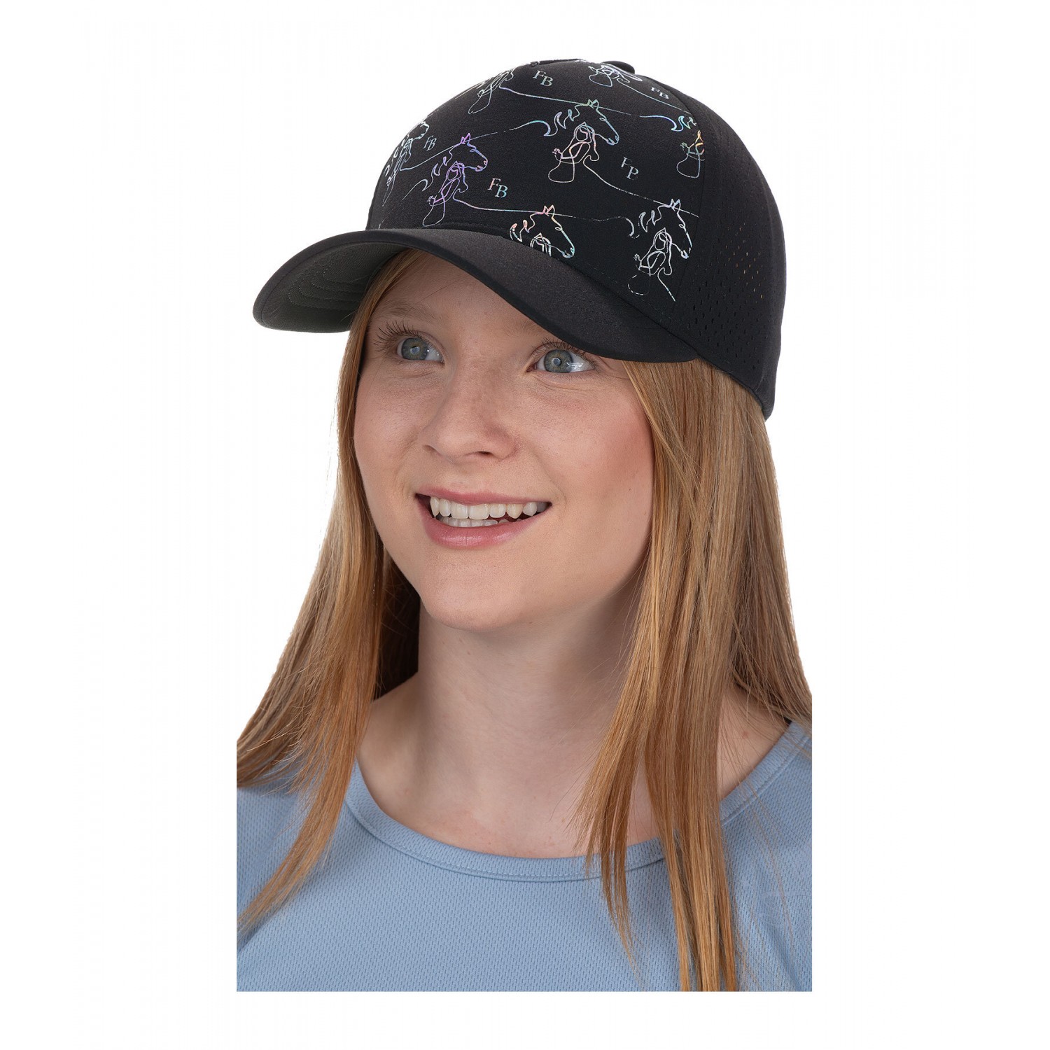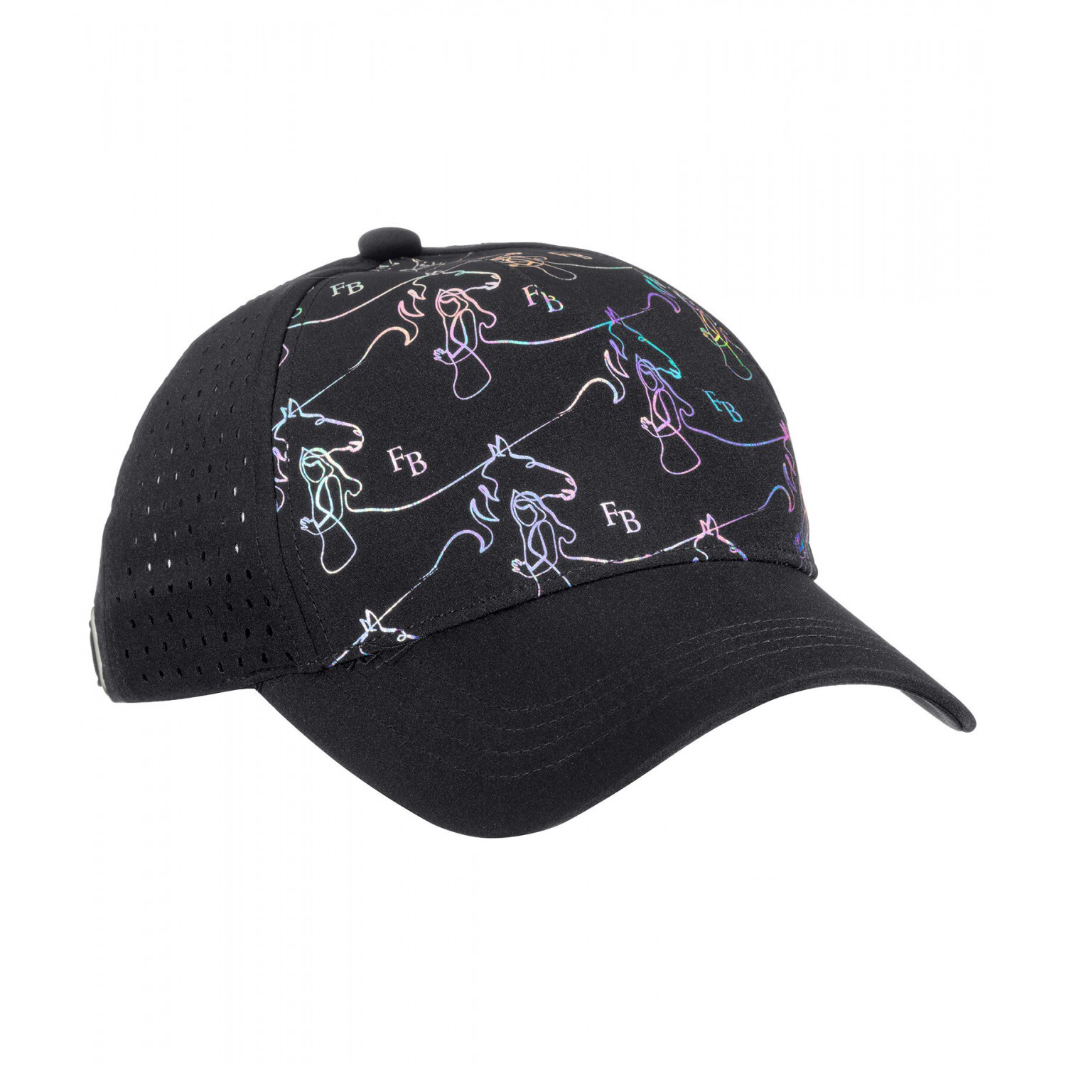 Модная детская кепка с голографическим принтом в виде лошади и логотипа. Летняя модель с дышащей сетчатой вставкой. 100% полиэстер.