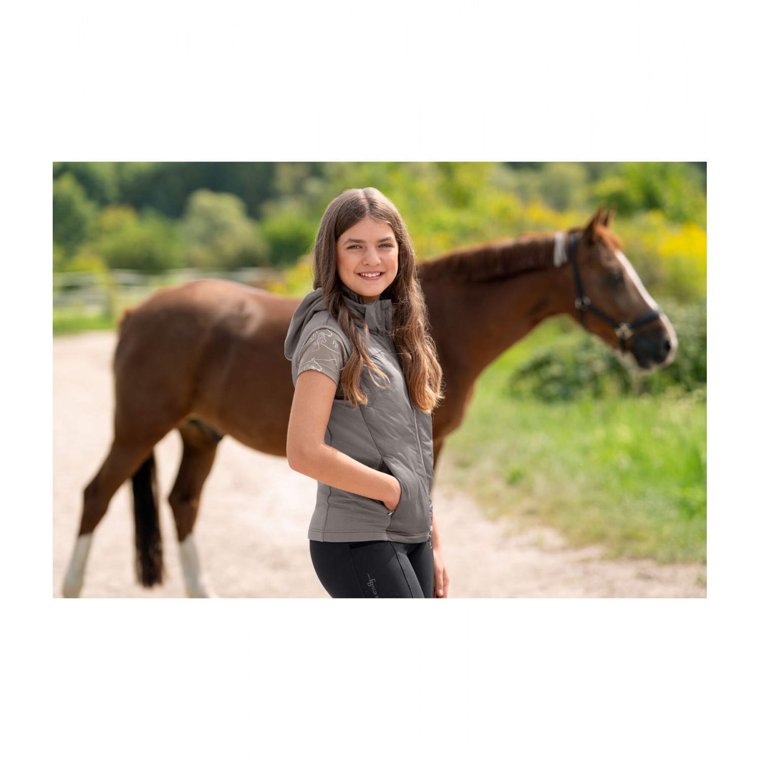 Детский комбинированный жилет с прочными, слегка уплотненными передними панелями и эластичным спортивным материалом. Оснащен двусторонней передней молнией, защитой подбородка, двумя карманами на молнии, съемным капюшоном и принтом Felix Bühler на плече. Передняя панель: 100% полиэстер; остальные панели: 96% полиэстер и 4% эластан.