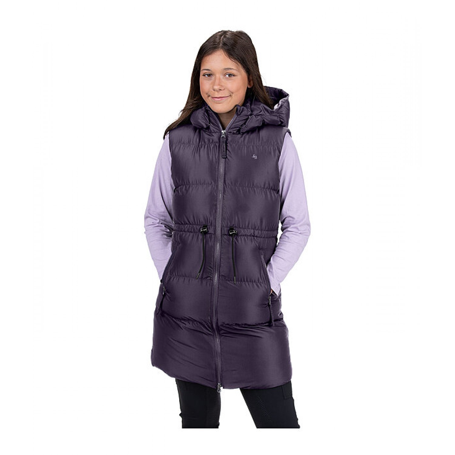 Длинный детский жилет с мягким пуховым наполнителем. Съемный, регулируемый и утепленный капюшон, который можно пристегнуть сзади. Двусторонняя молния спереди, подкладка на спинке, два кармана на молнии спереди с подкладкой из мягкого флиса. Длинный разрез на молнии сзади, принт с логотипом Felix Bühler на груди. 100% полиэстер.