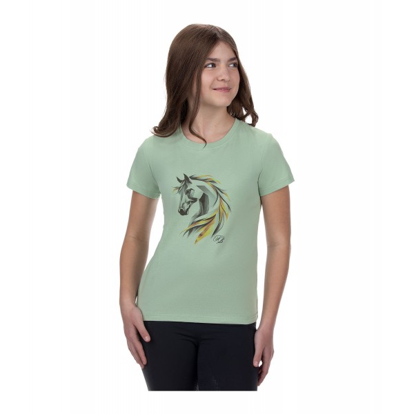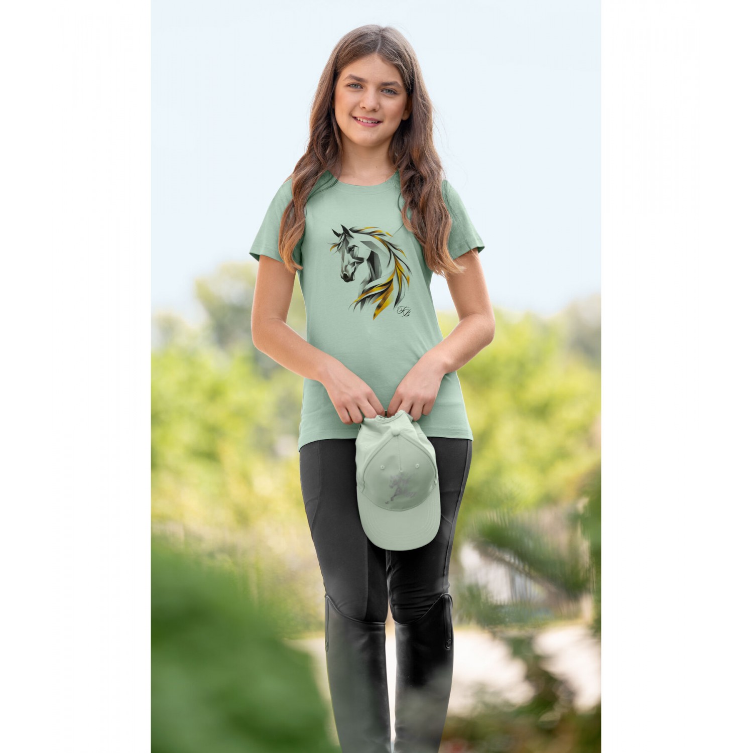 Стильная футболка с принтом лошади. Удобная детская футболка с ярким изображением лошади, круглым вырезом и короткими рукавами — идеально подходит для школы и отдыха. 100% хлопок.