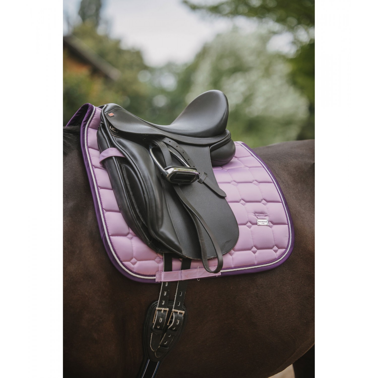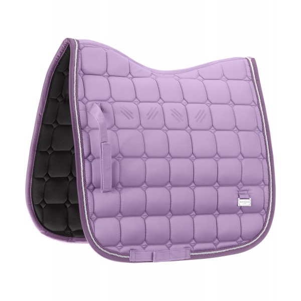 Элегантный блестящий вальтрап с гладким верхним материалом и силиконовыми элементами в области седла. Шикарные детали, такие как двойной декоративный шнур и металлическая пластина с логотипом с обеих сторон. Внутренняя часть из дышащей и влагопоглощающей воздушной сетки. 100% полиэстер. P: длина по спине 56 см, глубина 47 см. DR: длина по спине 62 см, глубина 56 см. VS: длина по спине 61 см, глубина 55 см.