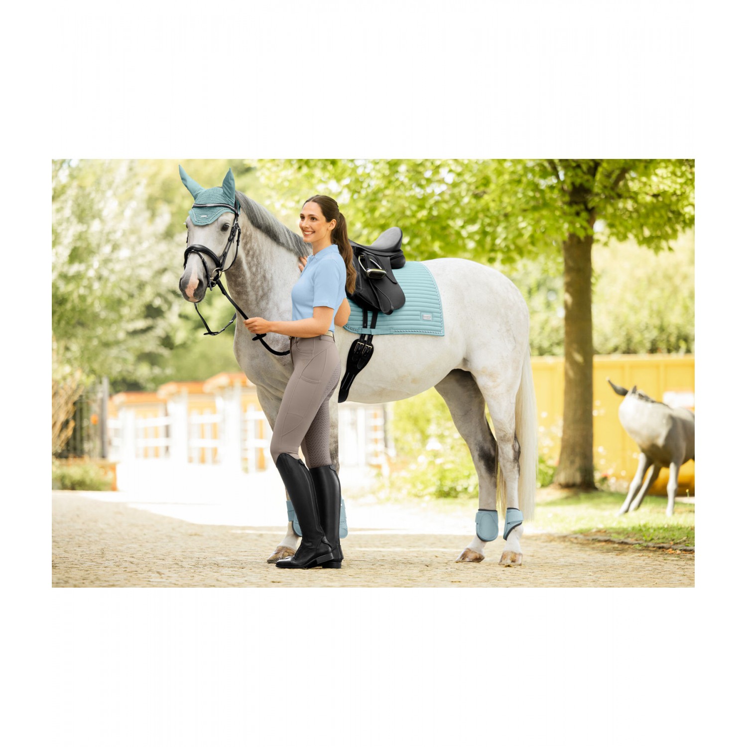 Элегантный вальтрап с металлической пластиной с логотипом. Матовый, мягкий верхний материал, спортивная вертикальная простежка и декоративный шнур в тон. Вставка из особо дышащей объемной ткани по линии спины для идеальной вентиляции. Внутри выполнено из влаговпитывающего и дышащего сетчатого материала. 100% полиэстер. Пони: длина 55 см, глубина 49 см. DR: длина 60 см, глубина 56 см. VS: длина 59 см, глубина 53 см.