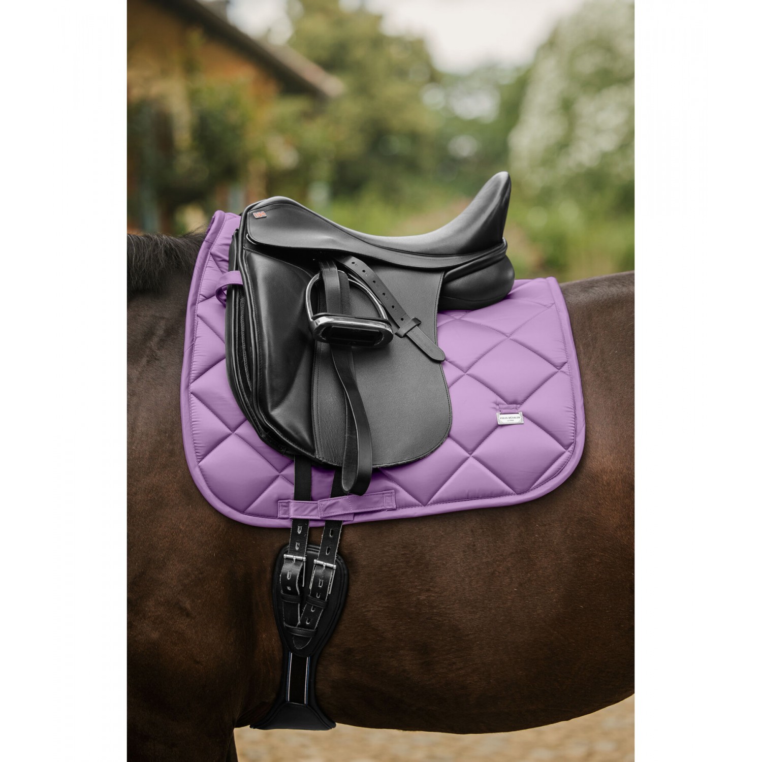 Блестящий вальтрап с гладким верхним материалом и элегантной ромбовидной прострочкой. Металлическая пластина с логотипом с обеих сторон. Нижняя часть выполнена из дышащего и влагоотводящего сетчатого материала. 100% полиэстер.