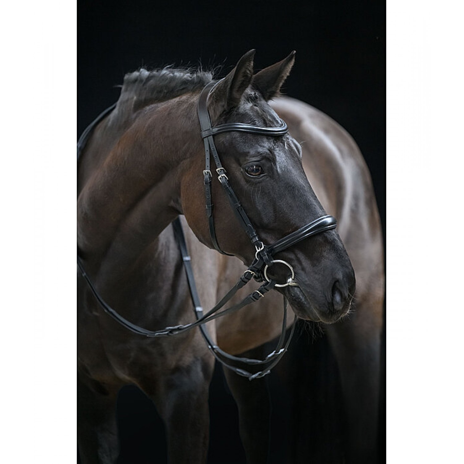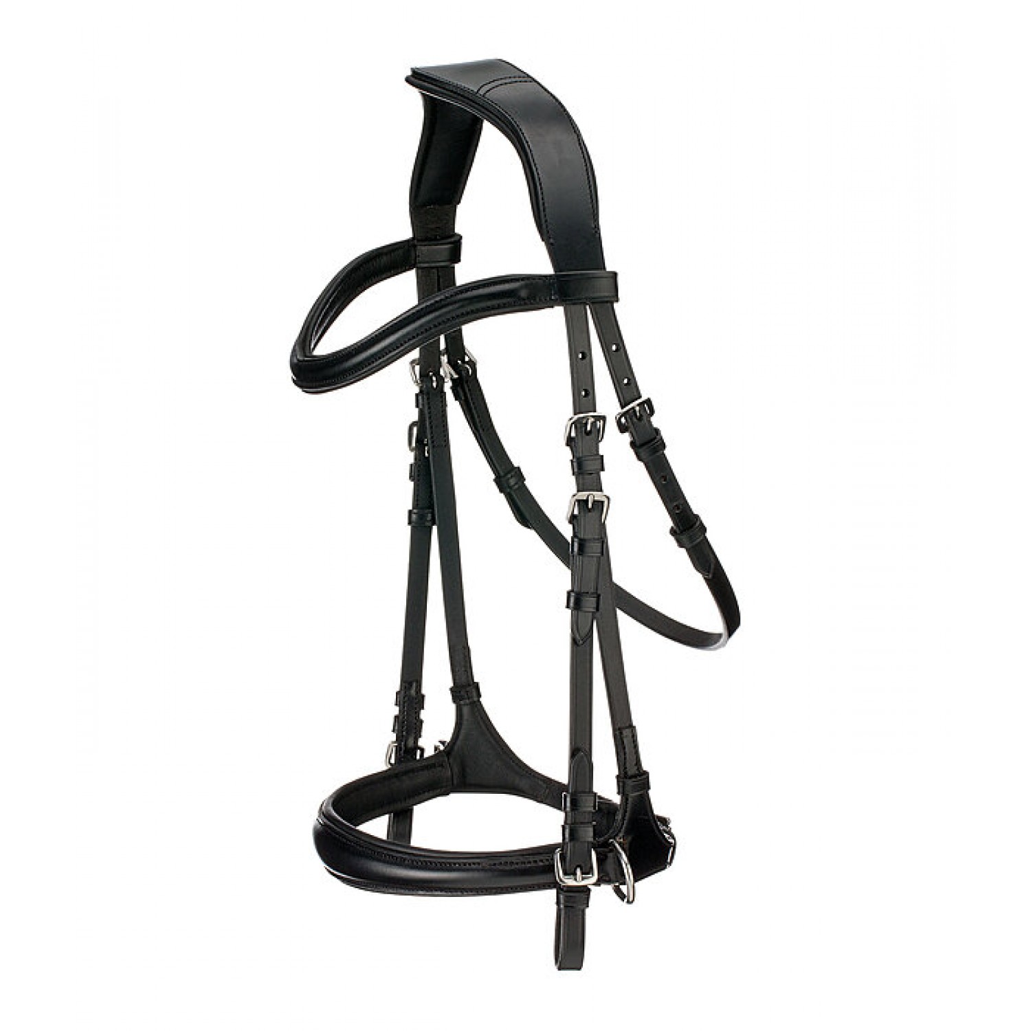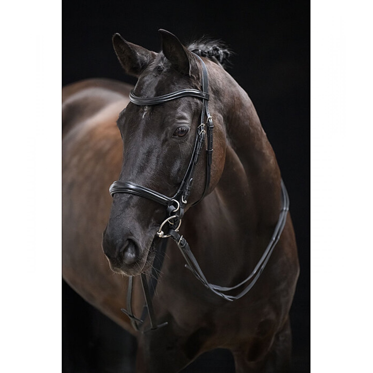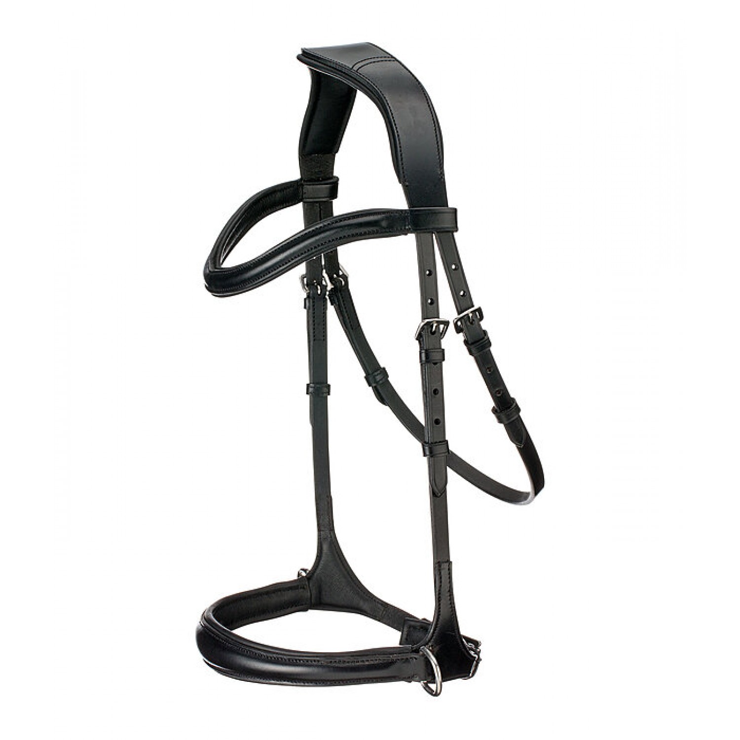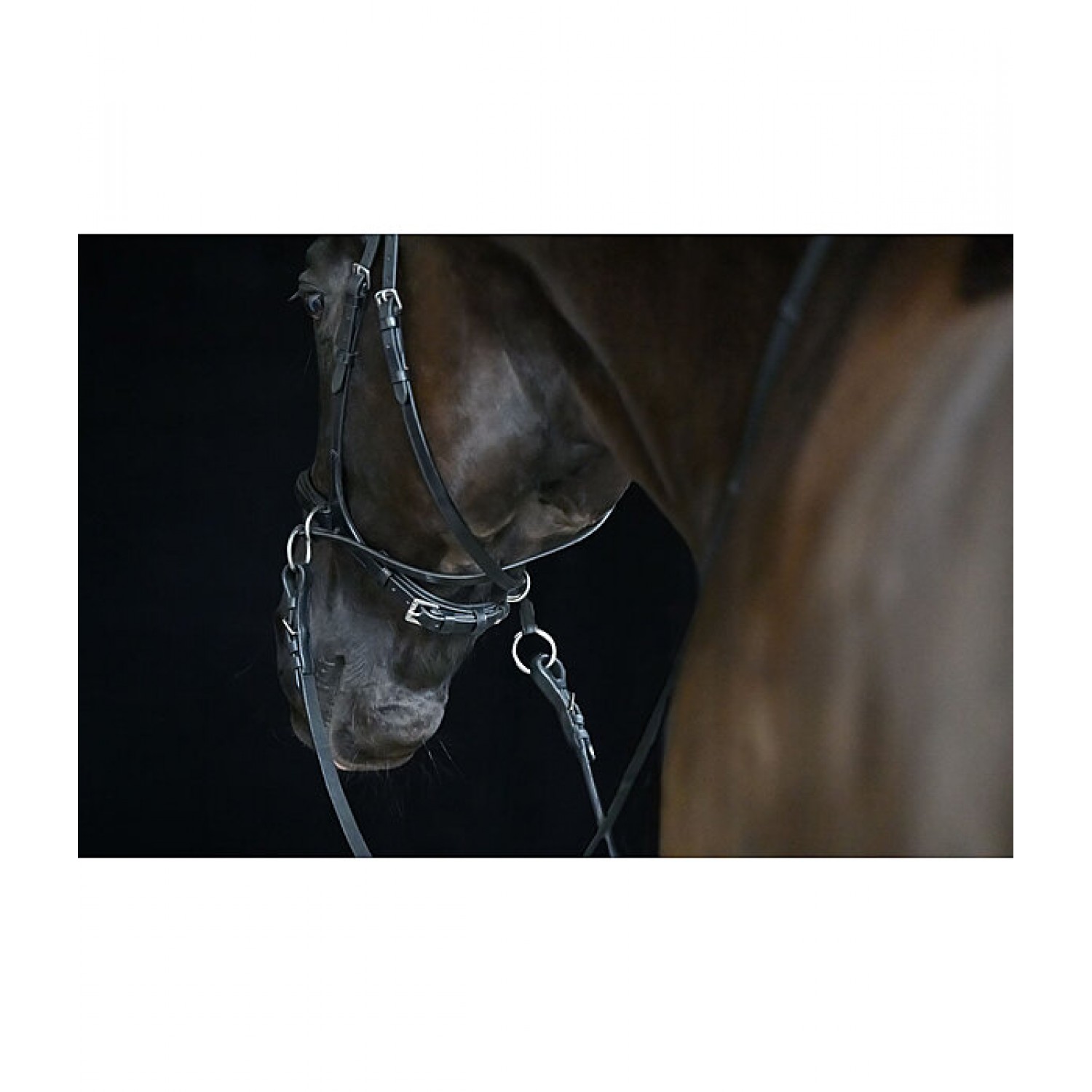 Универсальная уздечка из натуральной кожи, подходящая для различных целей. Идеально подходит для перехода к безтрензельной езде. Анатомическая форма носового ремня для лучшего распределения давления, а также анатомически изогнутые оголовье и налобник. Съёмные ремни для мундштука и трензеля. Серебристая фурнитура, повод и трензель в комплект не входят. Возможно 5 вариантов использования.