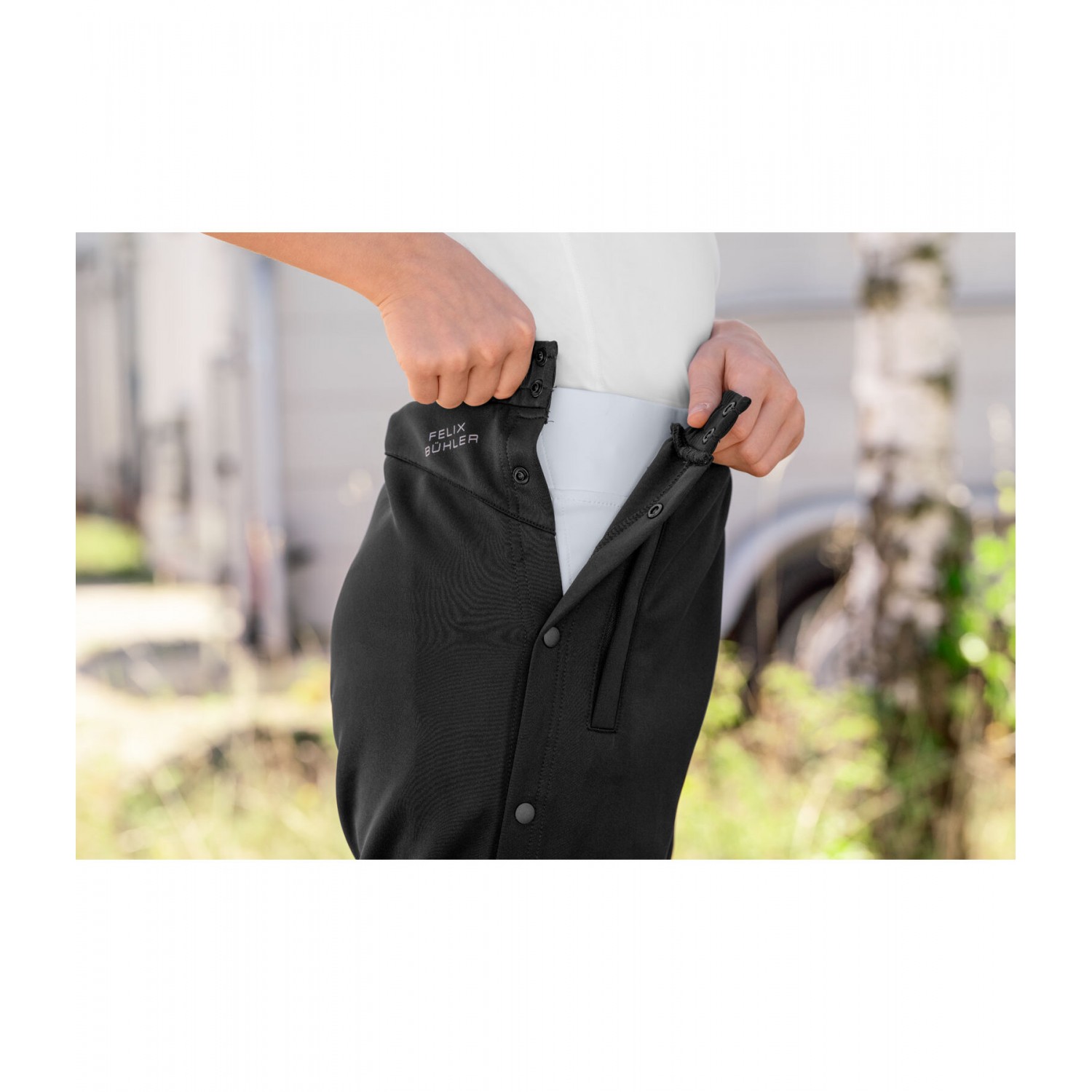 Идеальные, невероятно удобные детские штаны с боковыми застежками на кнопках – для аккуратного внешнего вида на соревнованиях. Они надежно защищают от грязи и могут надеваться непосредственно поверх бриджей для верховой езды во время подготовки. Боковые кнопки позволяют быстро и легко надевать и снимать штаны одной рукой. Изготовлены из дышащей, быстросохнущей эластичной ткани, растягивающейся в четырех направлениях. 95% полиэстер, 5% эластан.