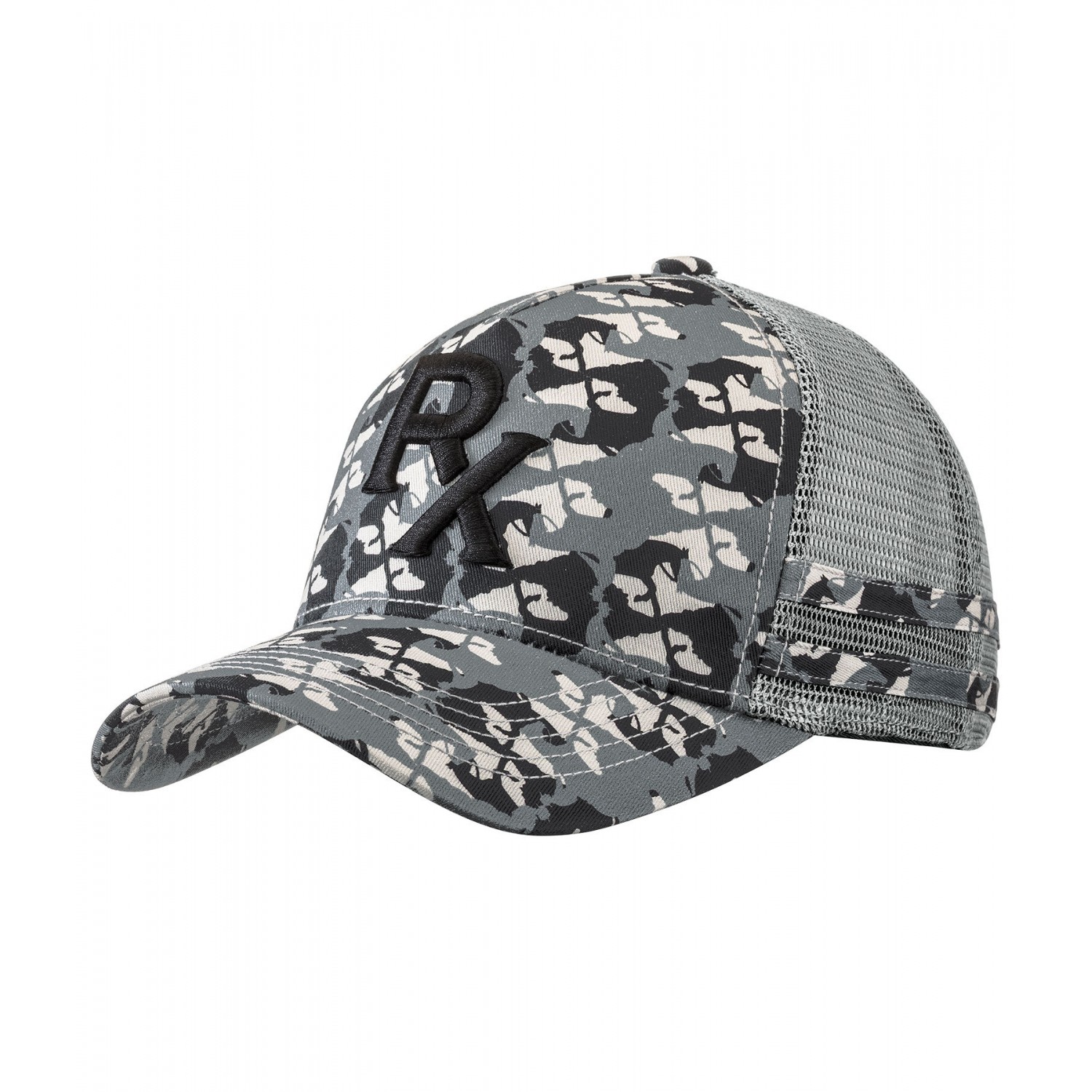 Эффектная кепка с камуфляжным принтом по всей поверхности, вышитым логотипом и сетчатой задней частью. Регулируемый размер. Воздухопроницаемая благодаря сетчатой ткани. 100% хлопок.