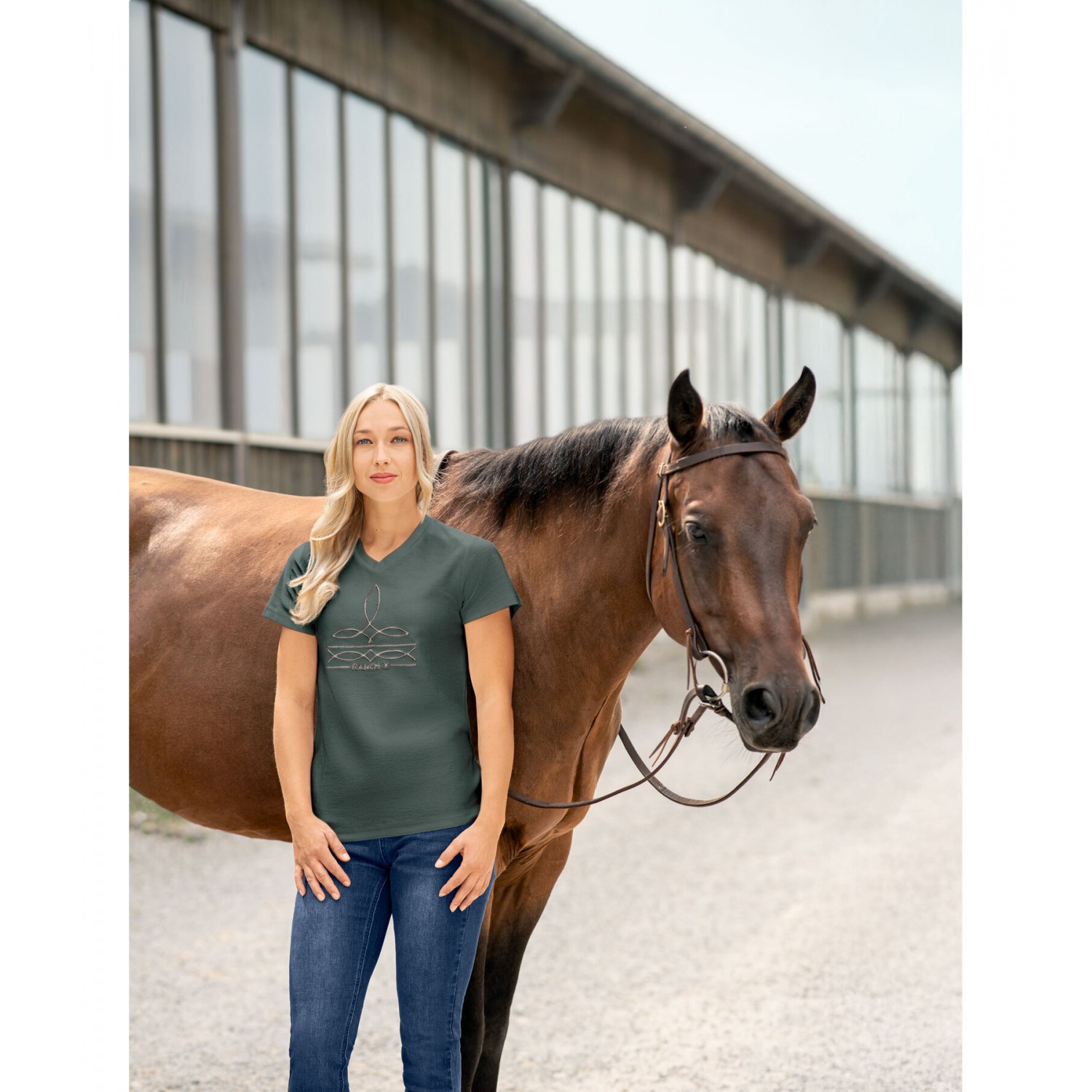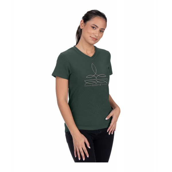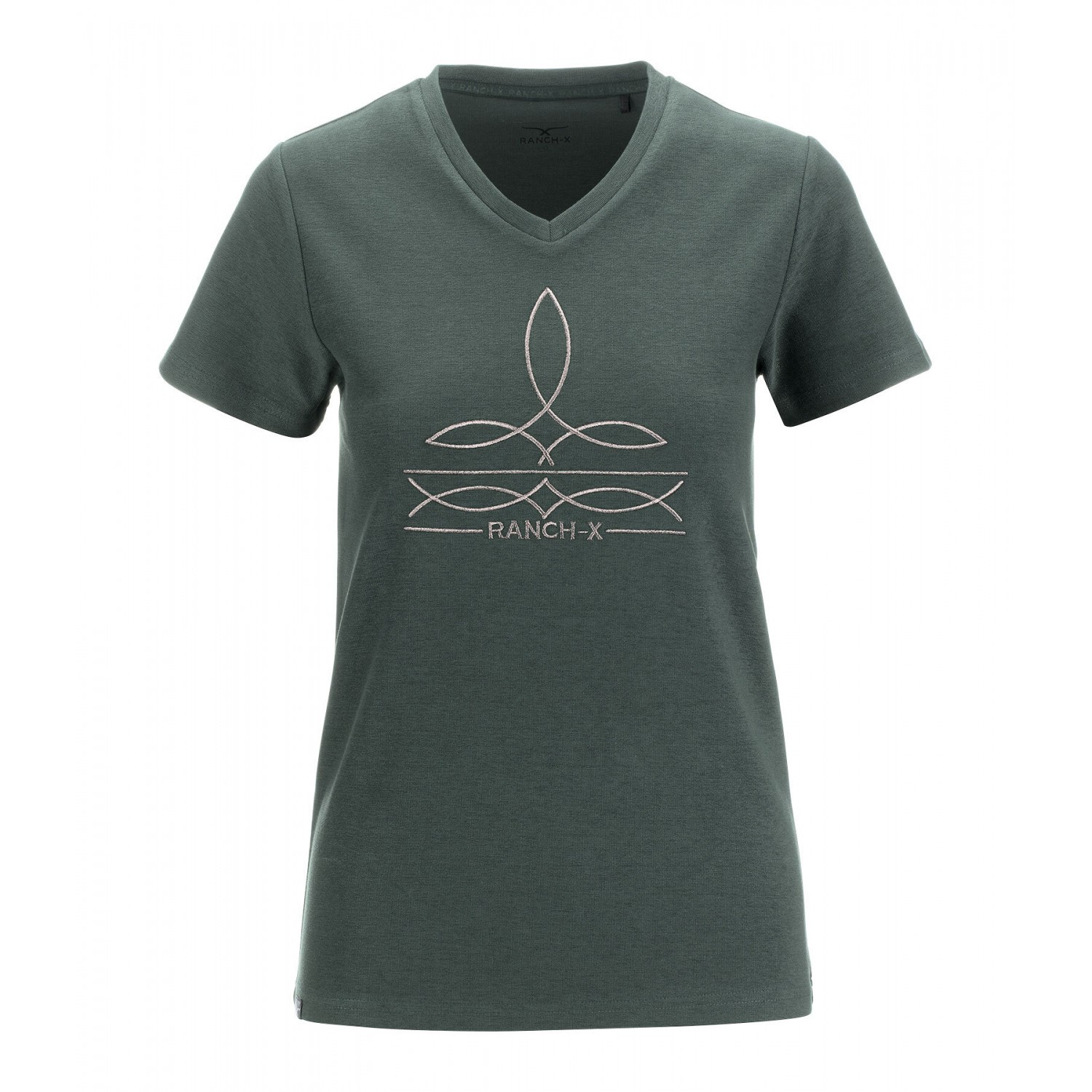 Стильная футболка с вышивкой на груди и плечах, с V-образным вырезом. 62% хлопок, 38% полиэстер.