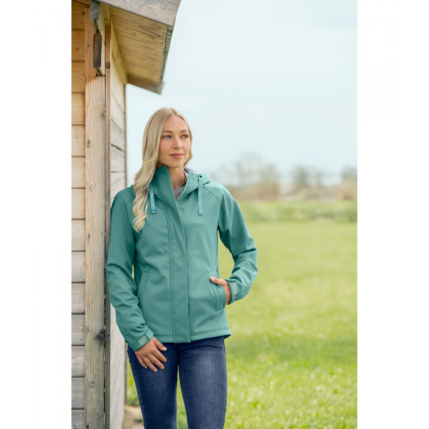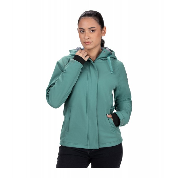 Ветрозащитная и водоотталкивающая куртка-софтшелл с капюшоном и эффектной подкладкой. Оснащена потайной двусторонней молнией спереди и регулируемыми эластичными манжетами на липучках. Два потайных передних кармана на молнии, нашивка с логотипом на рукаве и светоотражающий логотип на спине. Состав: 94% полиэстер, 6% эластан.
