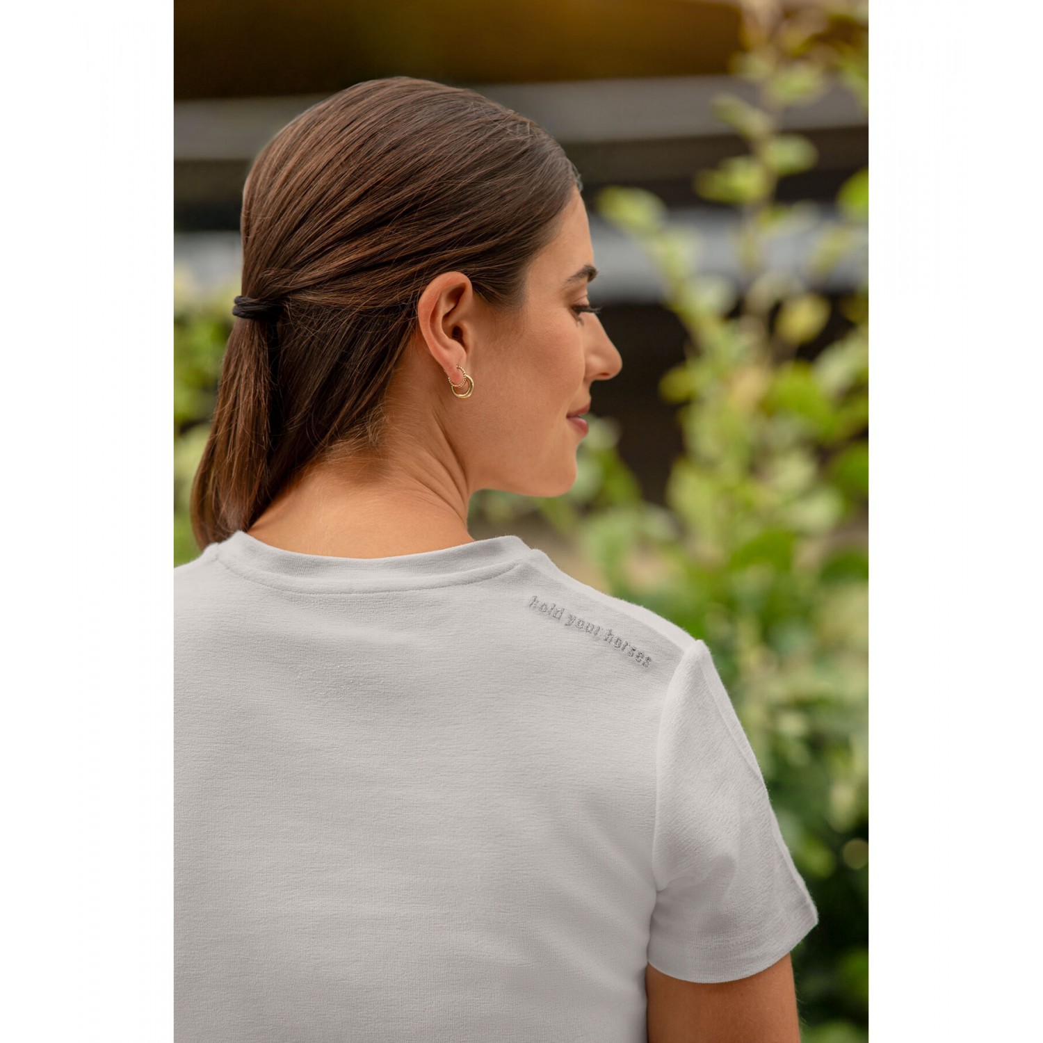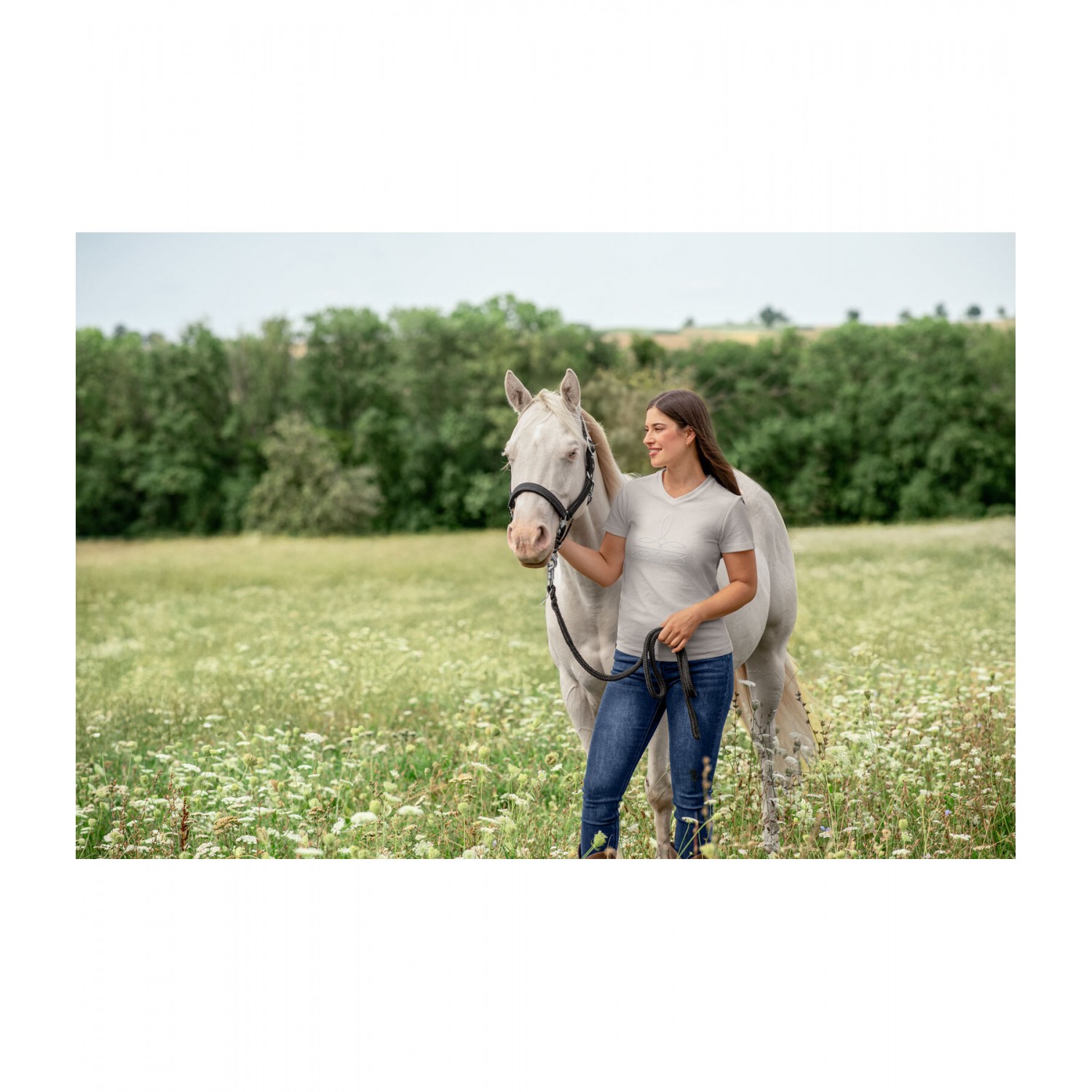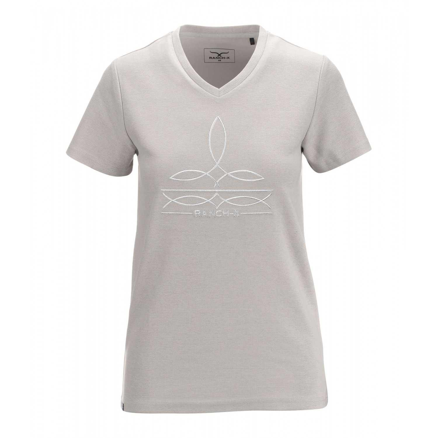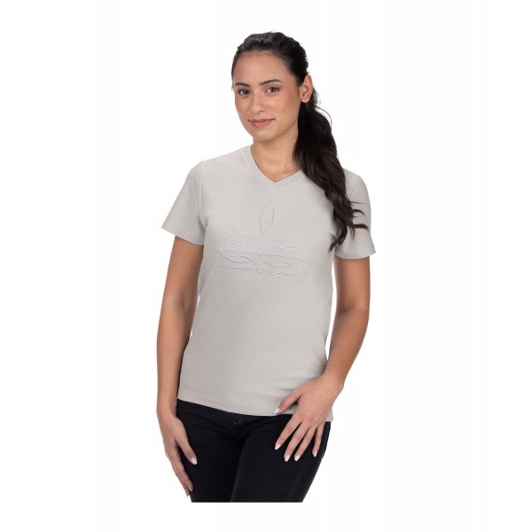 Стильная футболка с вышивкой на груди и плечах, с V-образным вырезом. 62% хлопок, 38% полиэстер.