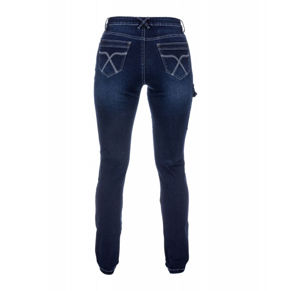 Удобные женские джинсы прямого кроя с зауженными штанинами и средней посадкой. Карман-карго на правом бедре для хранения ценных вещей. Высокая комфортность благодаря эластичности. Тёмная ткань и вышитый объёмный логотип на задних карманах. Состав: 79% хлопок, 19% полиэстер, 2% эластан.