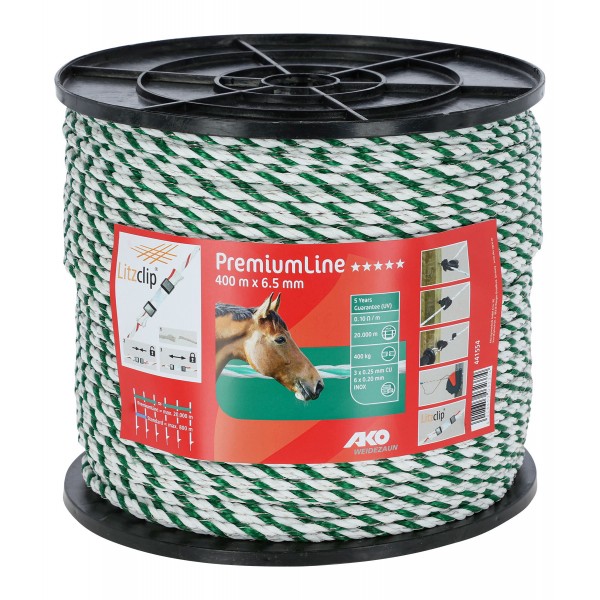 Диаметр 6,5 мм, бело-зеленый. Сверхпрочные моноволоконные жилы для повышения прочности на разрыв. Состоит из 3 луженых медных проводников диаметром 0,25 мм и 6 проводников из нержавеющей стали диаметром 0,2 мм. Сопротивление 0,1 Ом/м. Рулон 400 м. Максимальная проводимость и наилучшая безопасность при выпасе скота, даже при очень длинных ограждениях. Использование толстых луженых медных проводников обеспечивает в 40 раз более высокую проводимость по сравнению с обычными проводящими материалами.