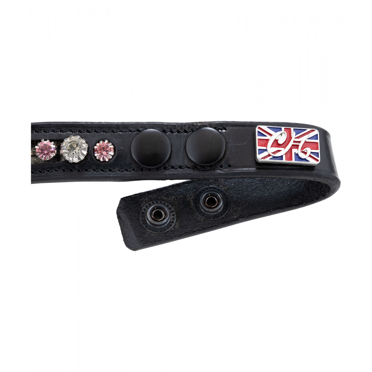 Изогнутый налобник из натуральной кожи с крупными и мелкими стразами. Легко меняется с помощью кнопок. Размеры: PONY = 39 см, COB = 41 см, FULL = 45 см, XFULL = 47 см.