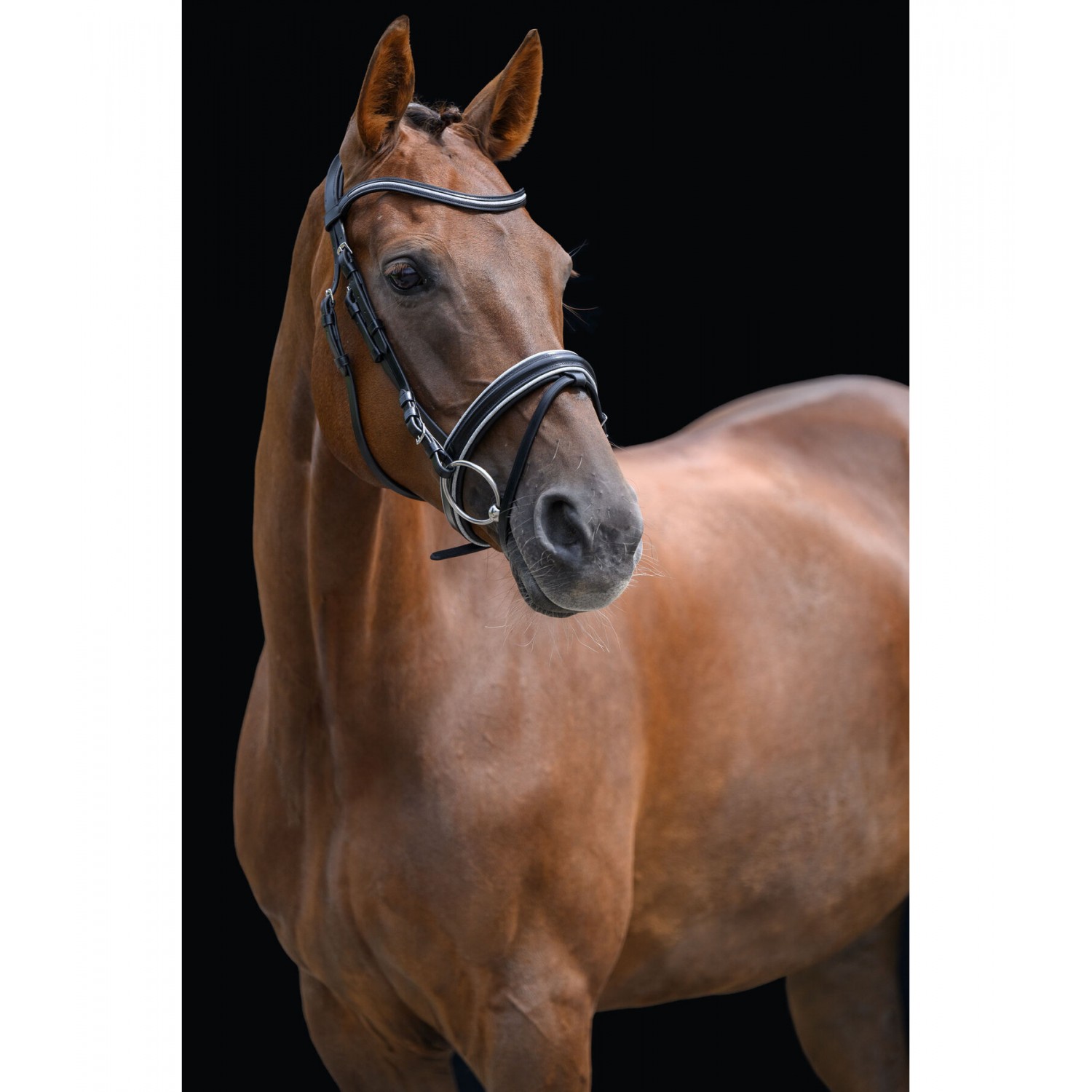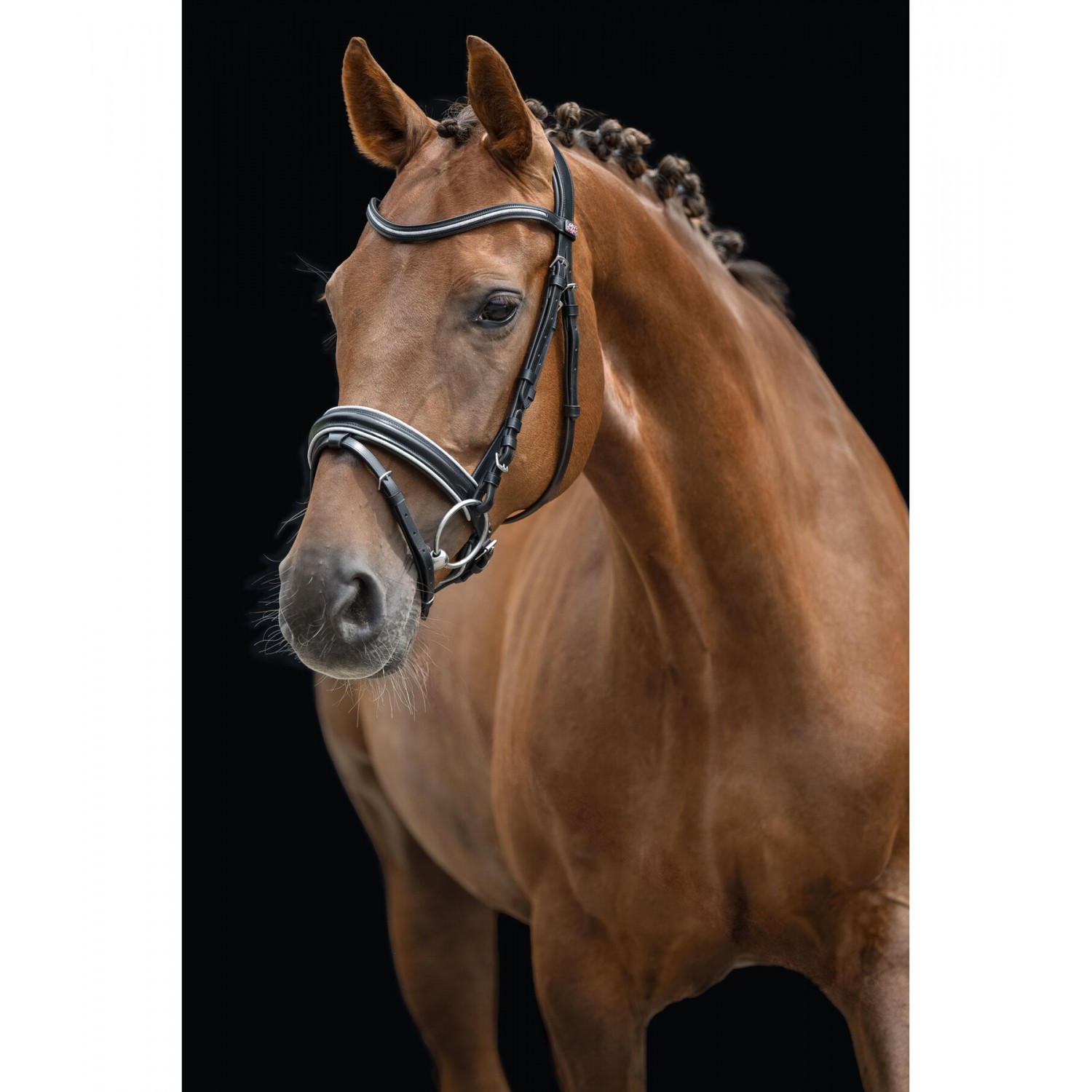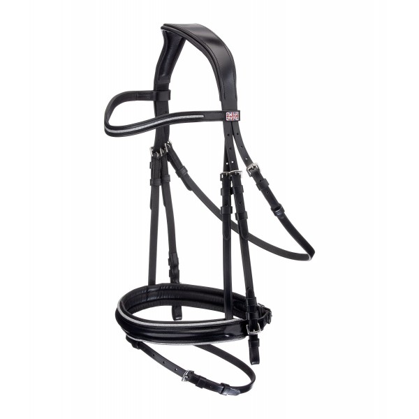 Классическая, элегантная кожаная уздечка с анатомически сформированным мягким оголовьем для снижения давления. Английский комбинированный капсюль имеет мягкую подкладку и украшен блестящей лентой. Повод и трензель в комплект не входят. Натуральная кожа.