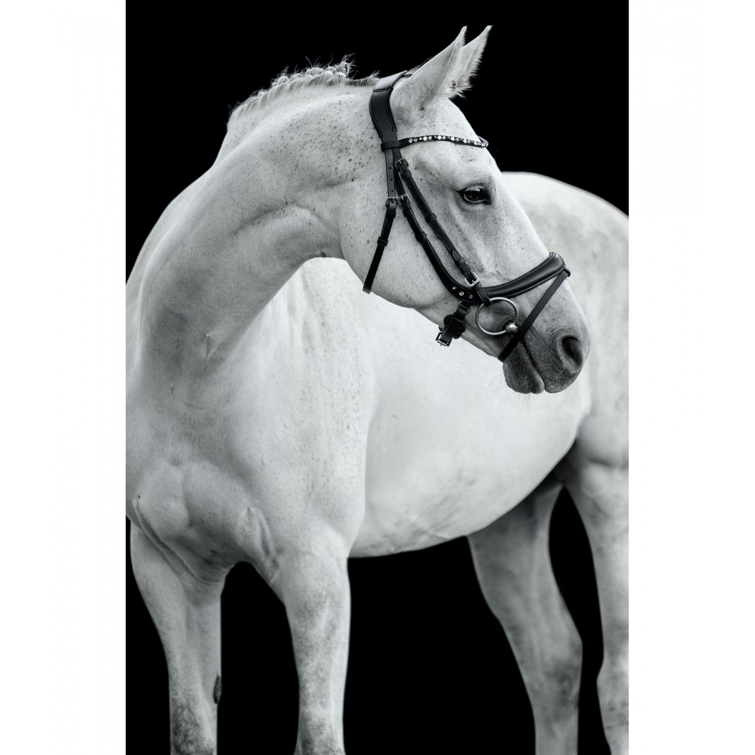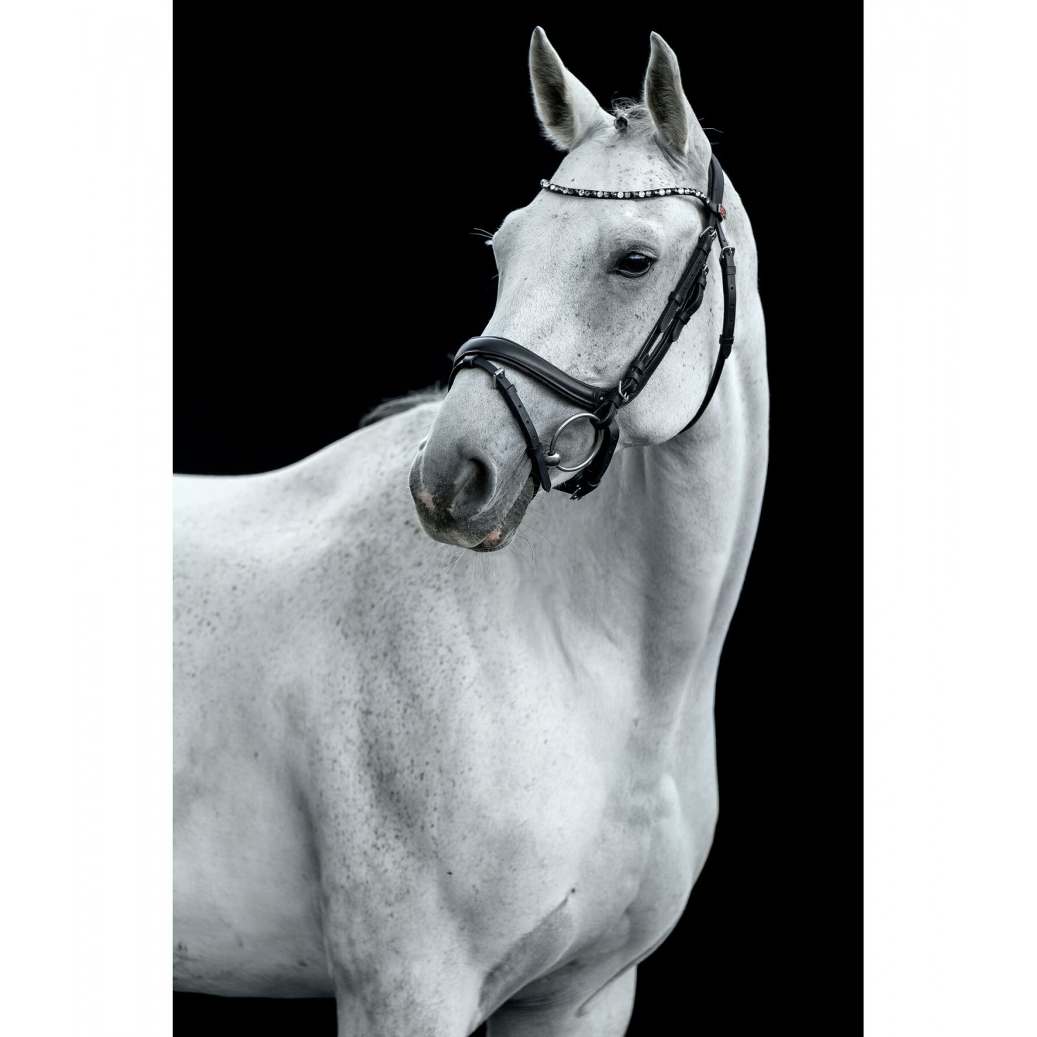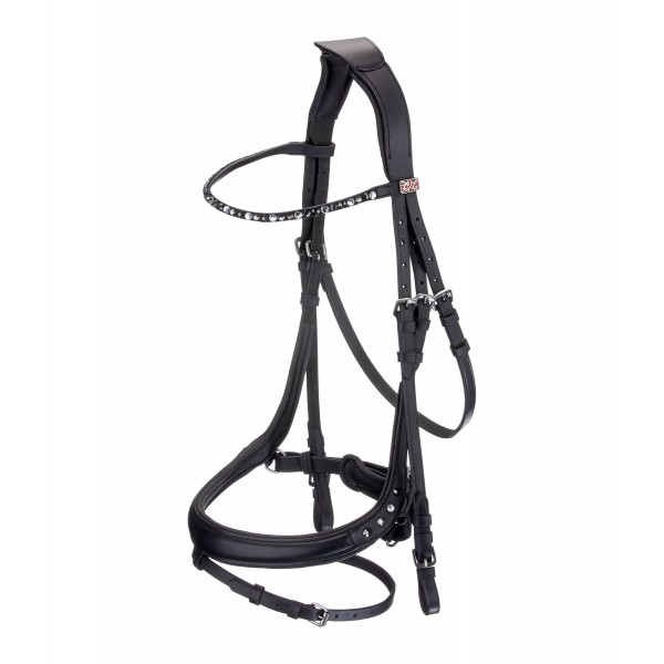 Стильная, спортивная и анатомически выверенная уздечка из очень мягкой кожи. Специально разработанный капсюль с изящными стразами и анатомическое оголовье обеспечивают лошади исключительный комфорт. Красивый изогнутый налобник со сверкающими стразами. Повод и трензель в комплект не входят. Натуральная кожа.