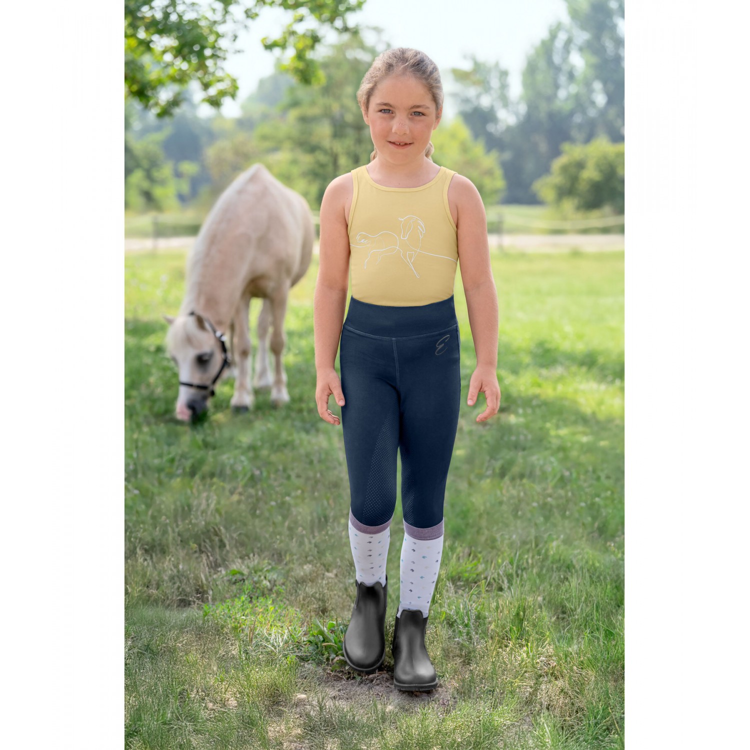 Удобные спортивные детские леггинсы с полной силиконовой леей. Дышащий, эластичный материал, растягивающийся в четырех направлениях, эластичный пояс с логотипом сзади. 90% полиэстер, 10% эластан.