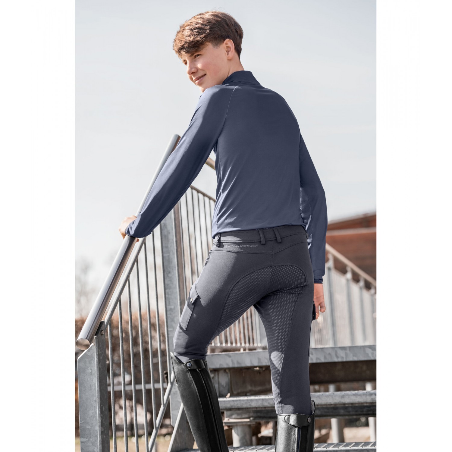 Модные бриджи для верховой езды с исключительным комфортом, подходят также мальчикам благодаря сверхнизкой талии. Спортивный дизайн с двумя карманами-карго на кнопках по бокам. Полная силиконовая лея . Состав: 75% полиэстер, 25% эластан.